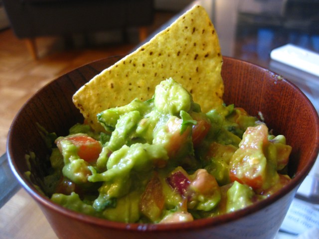 My flatmate and I are addicted to guacamole. It is always our go-to snack, whether it is while we are lazying around on an weekend afternoon or stumbling in at 2am and looking to satisfy the munchies. And for some reason, we are always motivated to make it ourselves – I don’t think I have ever purchased pre-made guacamole from the store. It’s such a quick and healthy snack to make – or if we are feeling fancy, we will make this with layered nachos or taco salads. We love our guacamole thick and chunky with tons of ingredients thrown together.