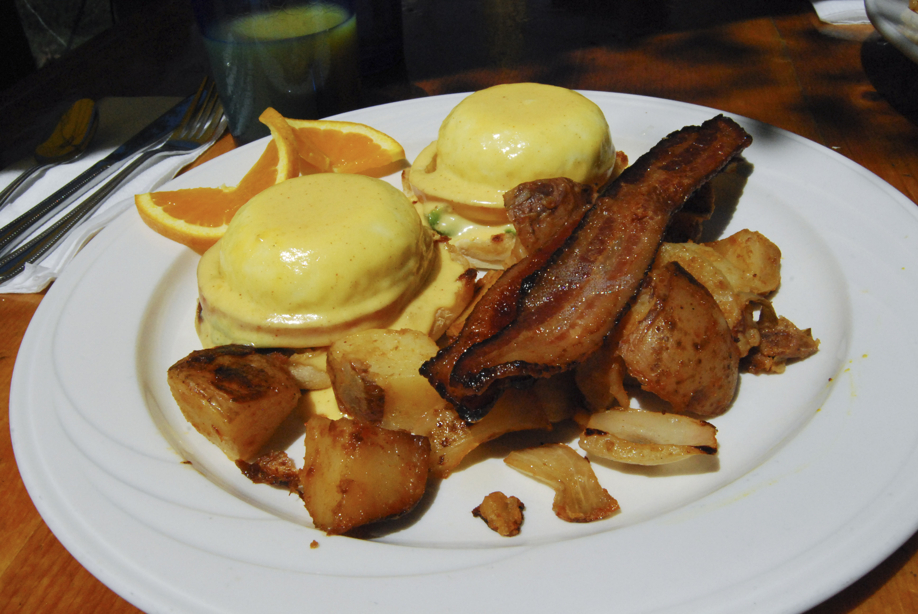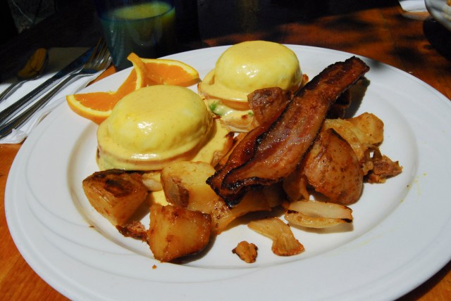 We were seated pretty quickly I ordered the California Eggs Benedict: Two poached eggs, avocado, tomato, and Hollandaise on an English muffin. If you like eggs benedict, I highly recommend this dish — the sauce is amazingly light and fluffy.