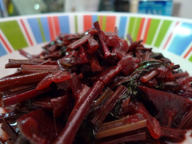 When cooking beets, oftentimes people will just discard the beet tops. It is such as waste because the stems and leaves can be eaten as well. A great way to use leftover beet tops is to make an easy and delicious beet top stew!
