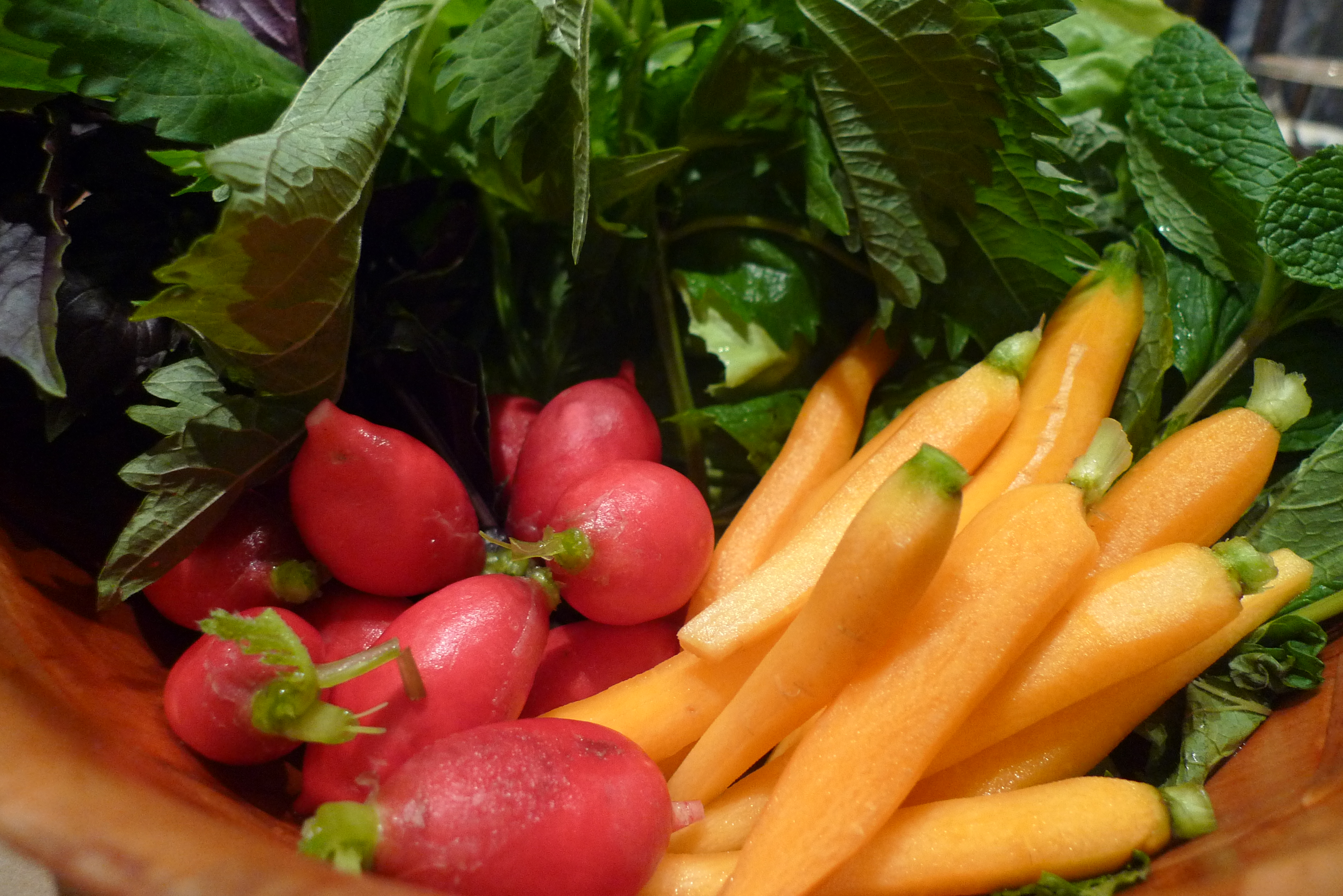 Herb Basket – baby carrots, red ball radishes, shiso leaves, thai basil, bibb lettuce