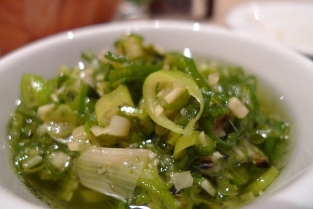 Sautéed Bok Choy – pork broth, cipollini, chili flakes