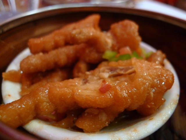 Now we get to the weirder stuff only Chinese people will eat: chicken feet! In Chinese, it is more elegantly referred to as “Phoenix Claws.” The chicken feet is usually steamed and then stewed in black bean and sugar sauce. It is difficult to eat because of all the tiny bones and you are essentially just eating the slow roasted skin… but I love it! This is one of my favorite dim sum dishes 🙂