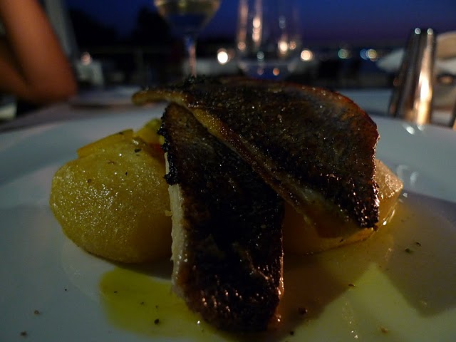 As an entrée, I ordered a duet of grilled sea bass and royal dorade with braised brussel sprouts, bell pepper and thyme roasted potato. The bass and dorade satisfied my undying craving for fresh, delicious fish. And the glass of Zlatna Vrbnicka I had (same as the wine at Susvid, Makarska) complemented all the seafood dishes.