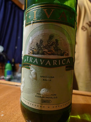 Rakija, produced by distilling fermented fruit, is a popular drink in the Balkans. It is typically 40% alcohol, but home-made versions tend to be stiffer. We had the honor to taste such Croatian moonshine on board courtesy of Bambino, our intrepid lunch and dinner server. Our stomachs were a bit too delicate for this creation, yet he gulped his shot down as if it were water.