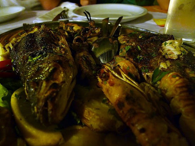 Jen, Kris and I ordered a seafood platter to share along with an appetizer of grilled veggies with grilled goat cheese. The two grilled fish, although high maintenance because of the bones, were flawlessly flaky and juicy. The crispy skin was the icing on the cake, so to speak. We also devoured the calamari and scampi — all were delicious and we did not mind getting a bit messy. The grilled vegetables were a bit too oily and the cheese was rubbery in texture (we expected something soft like halloumi). We paired the dinner with a bottle of Zlatna Vrbnicka wine (white), which incidentally I also later had at the Spalatum at Le Meridien, Split.