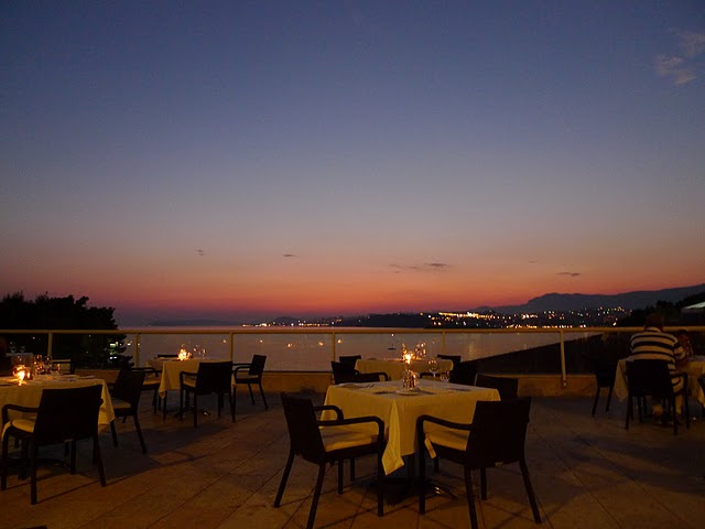 The service, as expected, was impeccable and the setting was absolutely spectacular — sunset over the Adriatic Sea with the city of Split in the distance. We even caught a bit of the fireworks show again.