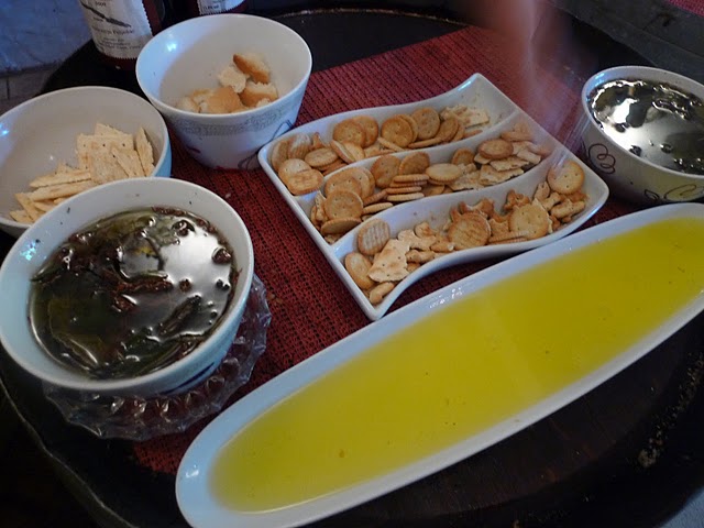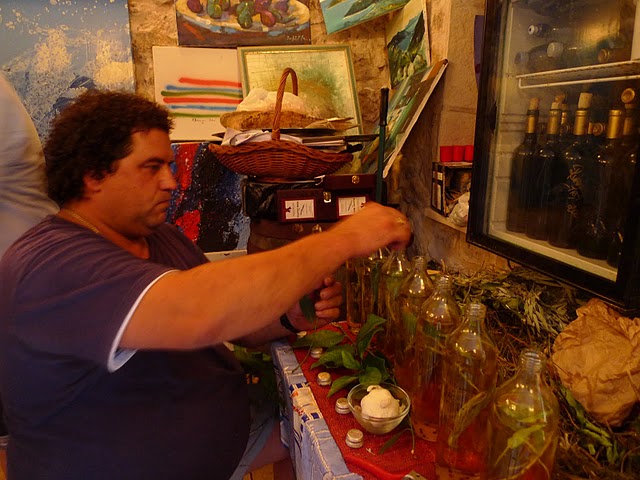 Again for 20kn we tasted a white and a red wine. But the best part was the olive oil. We stood over the bowl like vultures over a carcass and feasted on oil-drowned crackers. The oil was fantastic — freshly infused with herbs (tarragon, lemon leaf, orange leaf, bay leaf, rosemary, basil, garlic, pepper) grown in the family garden.