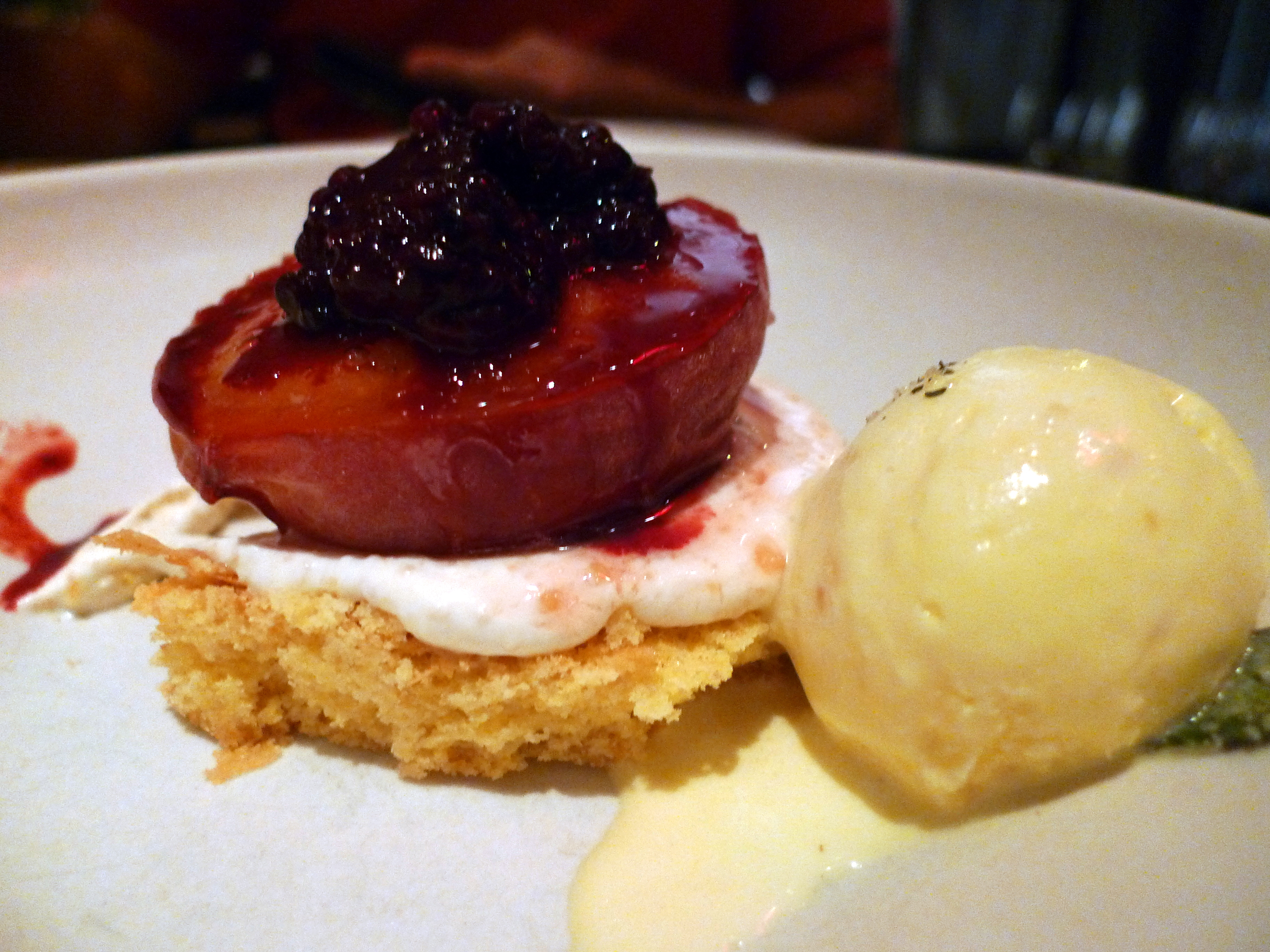 Roasted Peach, Wild Blueberries, Sea Salt Sable Breton, Sesame Ice Cream