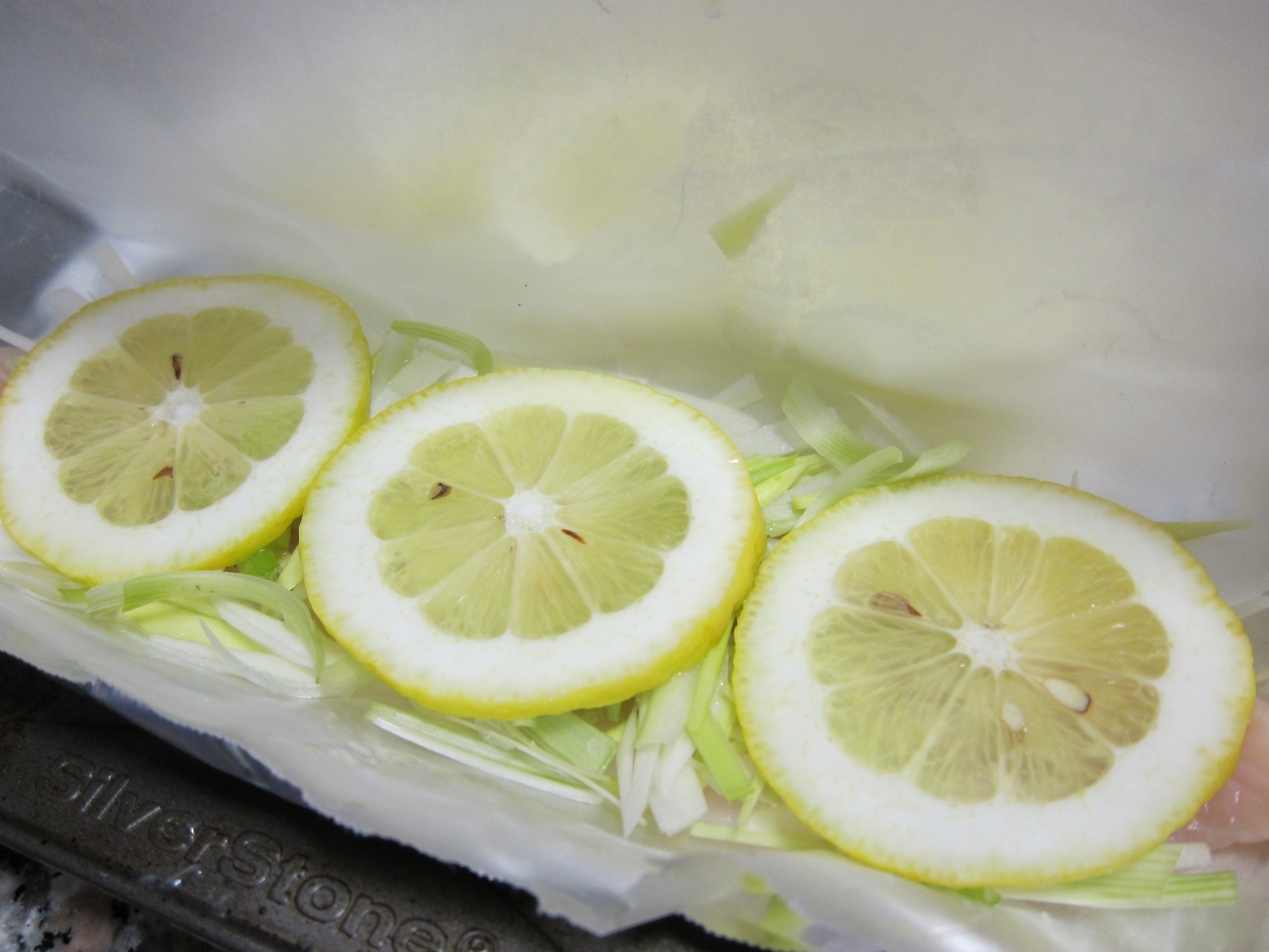 Preheat the oven to moderate 350°F. Place each fillet in the centre of a piece of baking paper large enough to enclose the fish. Sprinkle the dill under the fish or on top. Season lightly (I used salt, pepper, garlic salt, lemon flakes).