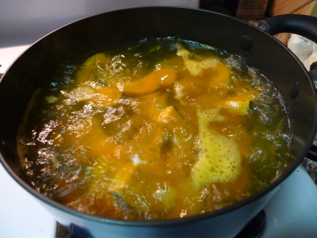 Add the squash slices to the boiling water.  Cook until a knife pierces the flesh easily.