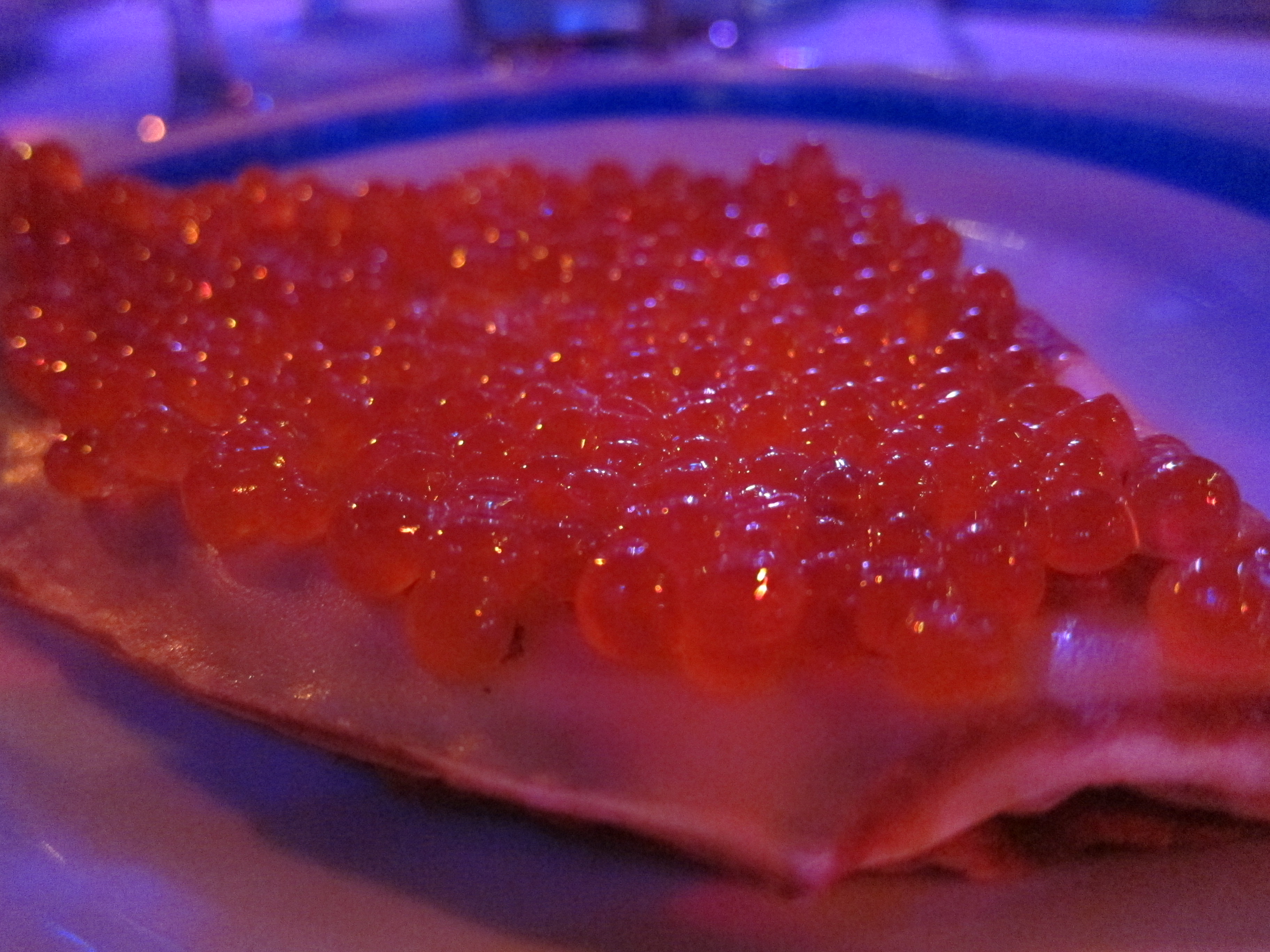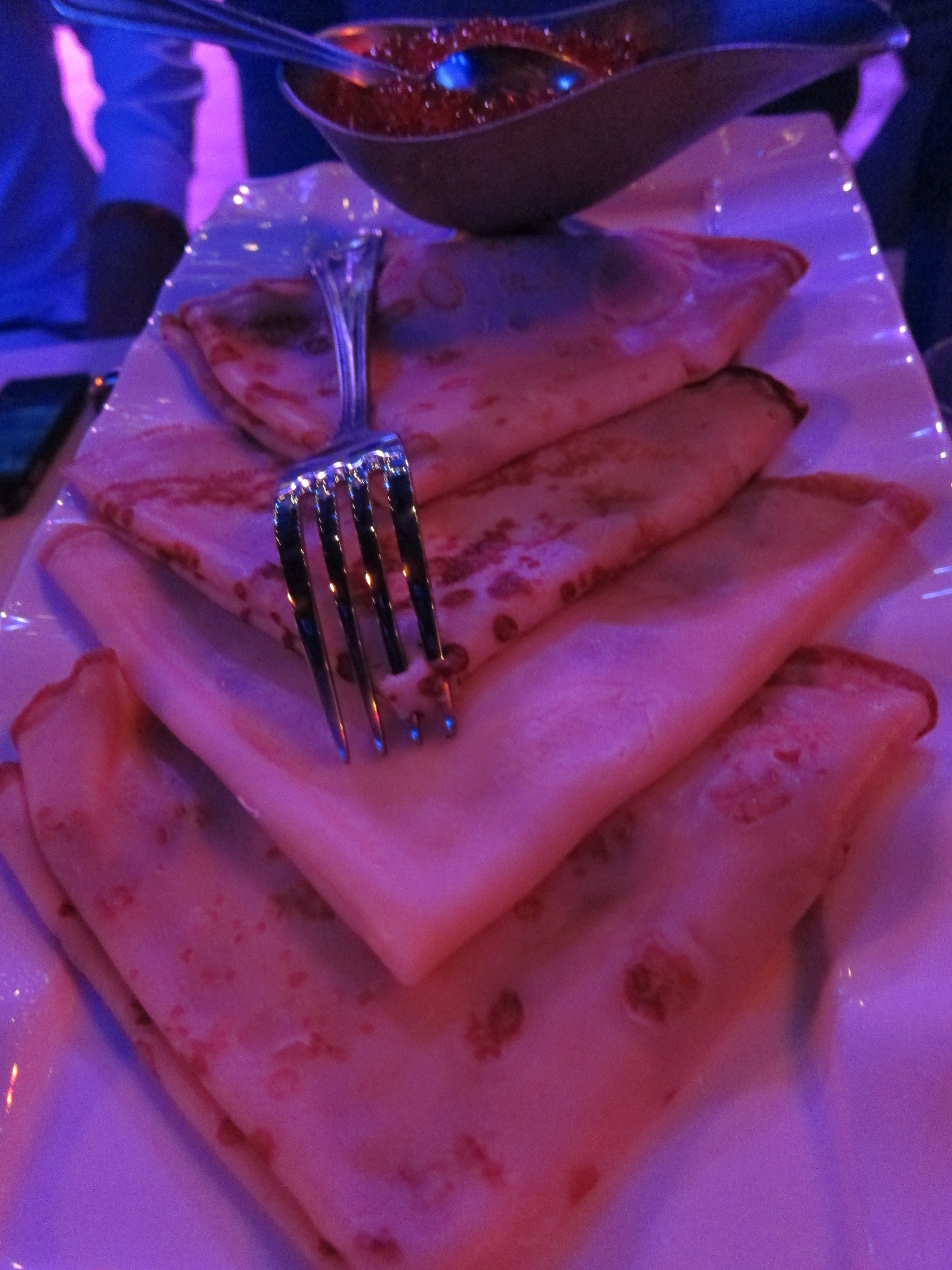 I used to really dislike caviar — it seemed fishy and the bursting nature of the little fish eggs disgusted me. Now I find it amazing, specifically for those reasons. And the caviar goes especially well with the sweet dough of the blin/blinchik, essentially a Russian version of a crêpe.