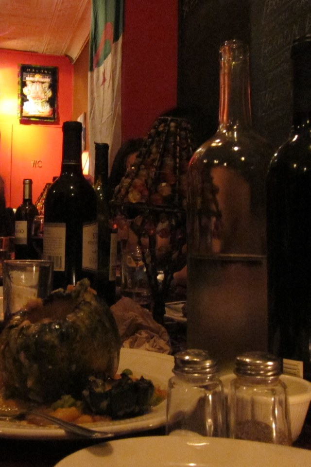 The interior is actually divided into two parts, each with a separate entrance. It’s pretty cozy, which basically means the seating is tight. The walls are adorned with French and Caribbean prints as well as a chalk board with the menu du jour. You really get the feel of being at a corner bistro in France, since all the servers speak with a thick French accent and make you feel insignificant when you order the dishes and butcher the French language. But then they pop open the multiple bottles of wine you brought and everyone is back to being jolly.