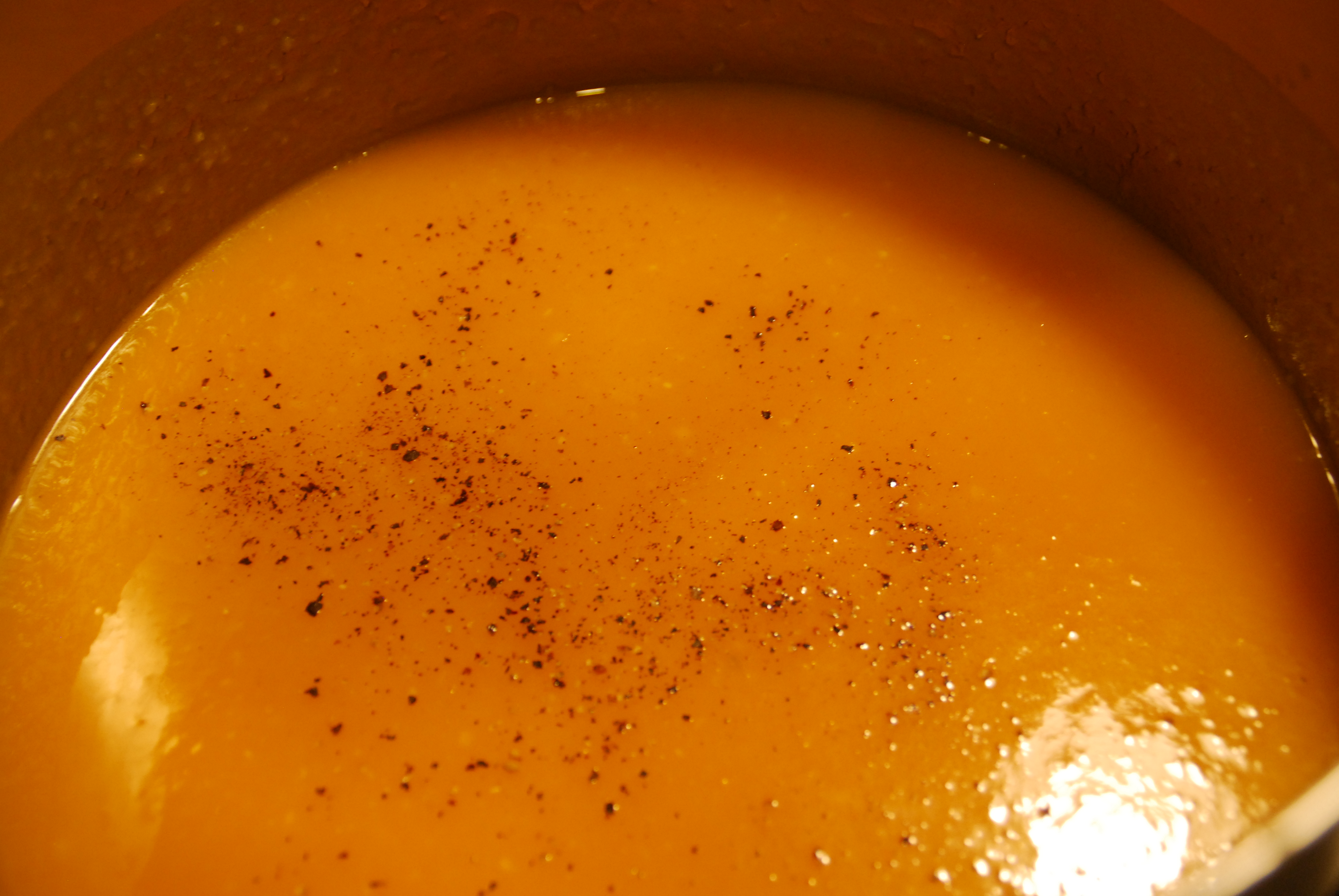 Transfer the soup to a blender, and purée soup until smooth. You may have to blend the soup in two batches. I used my mom’s super powerful juicer that puréed the soup to creamy perfection!