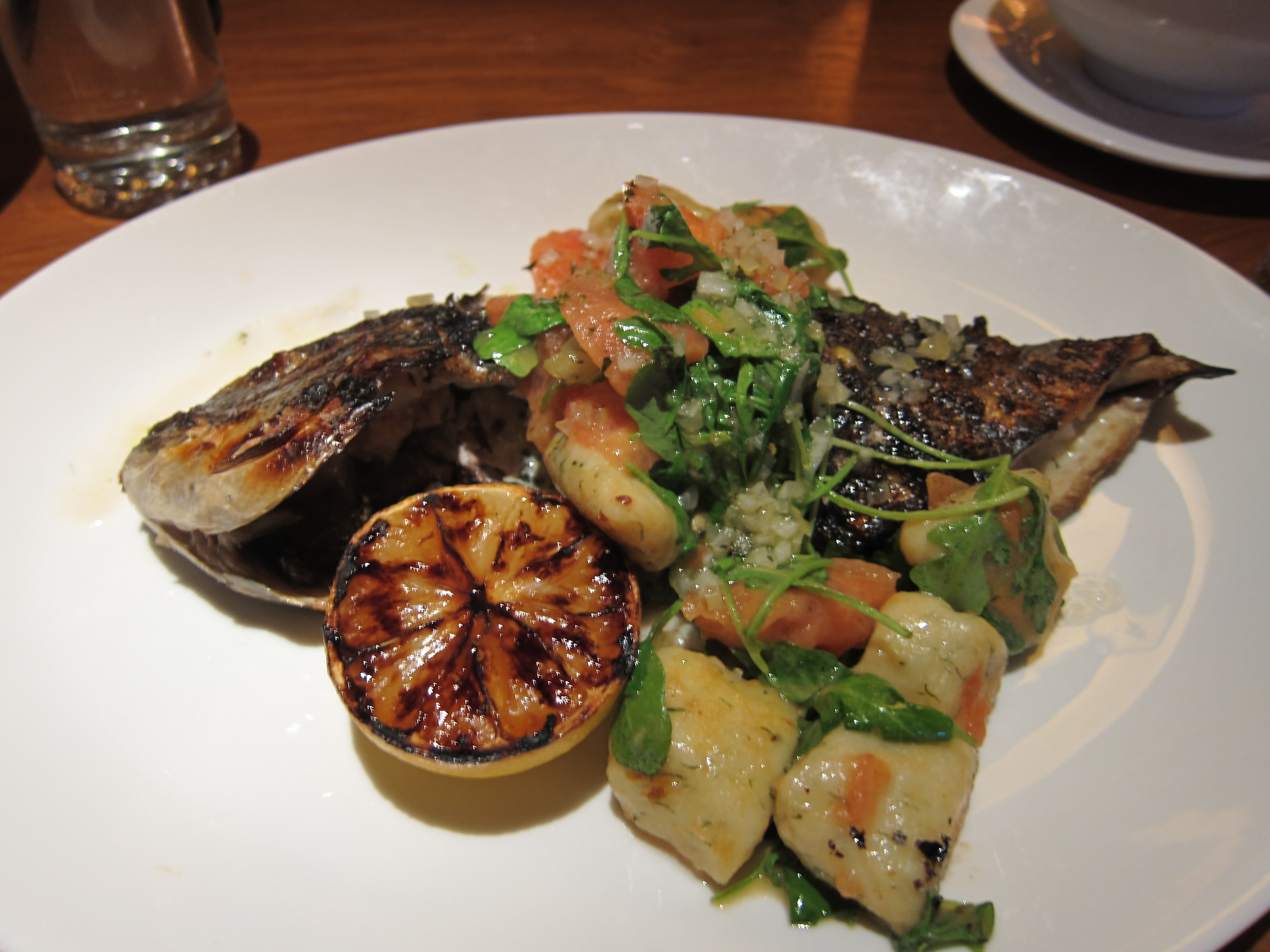Grilled Whole Daurade with Herbes de Province, Dill Gnocchi, Agro Dolce, Tomato