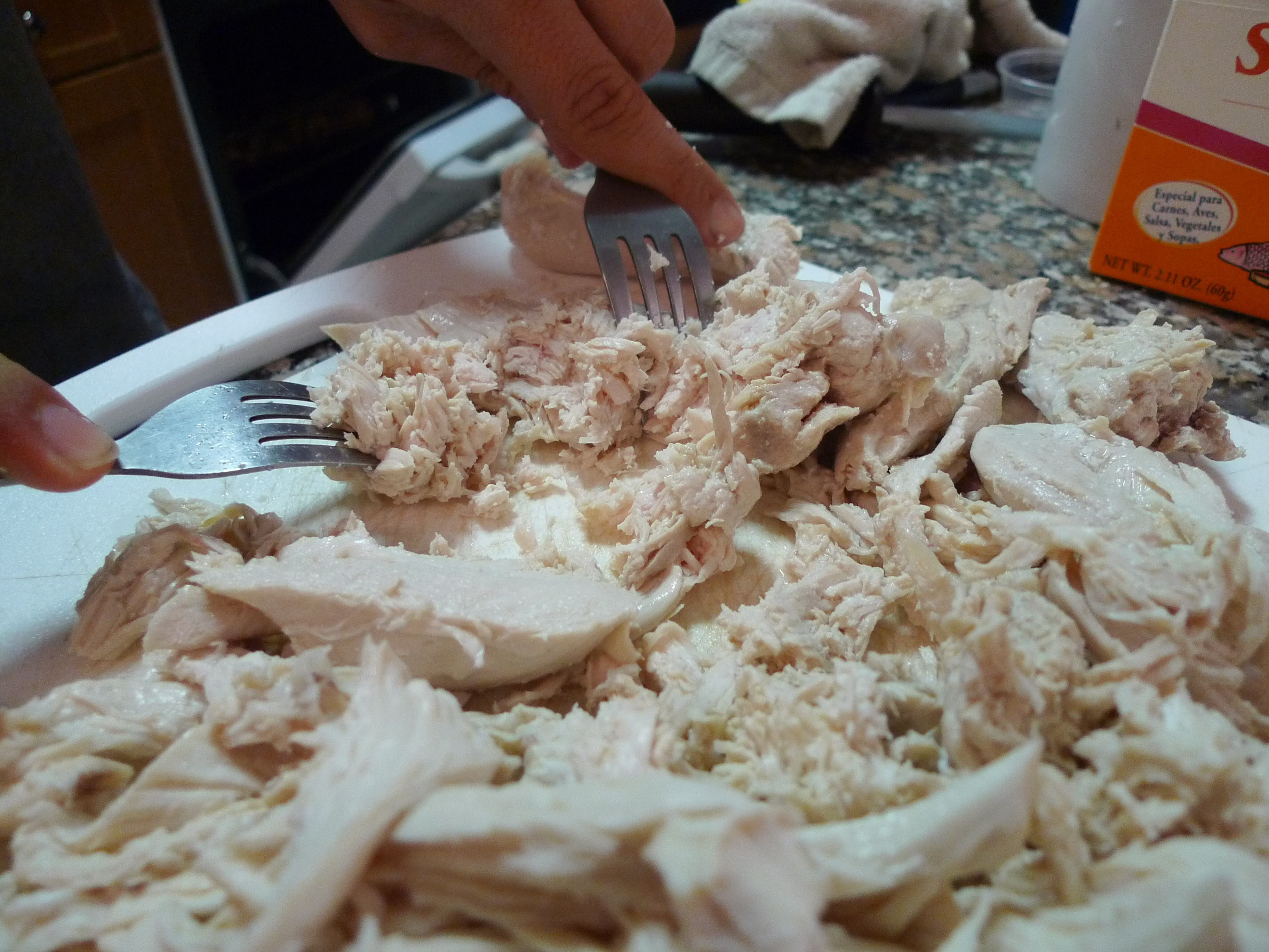 • 2-1/2 C cooked shredded chicken breast meat (about 2 lbs chicken breast, shredding directions below)