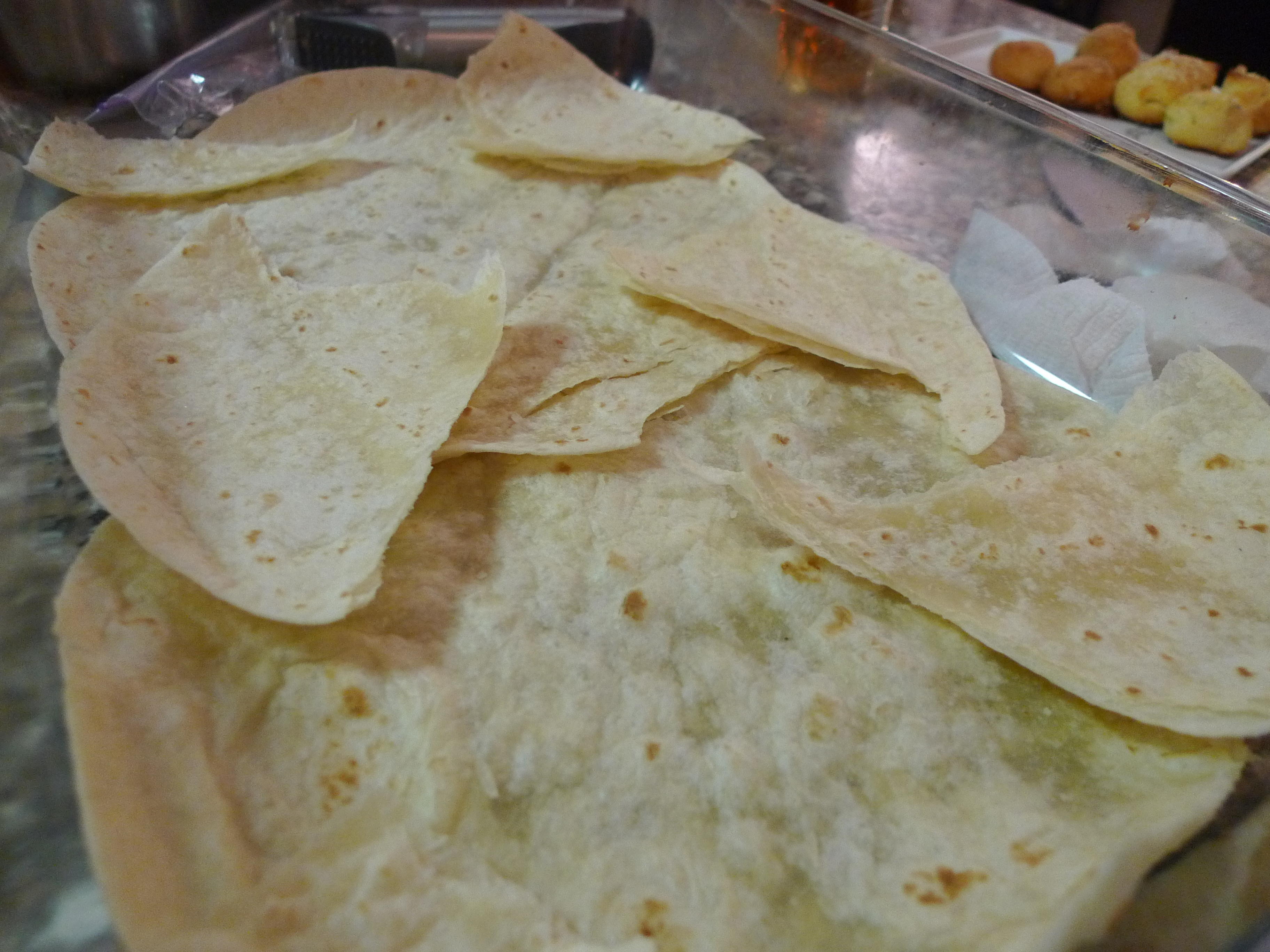 Arrange 1/3 of the tortillas at the bottom of baking dish.