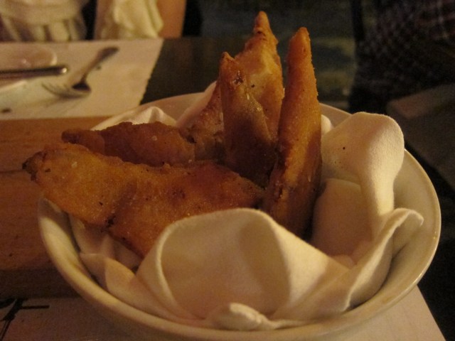 This appetizer was a let down. I had tried pig’s ears at The Spotted Pig, and the ears were indeed crispy and deliciously fat. The texture on these was akin to that of a fruit roll-up, so you knew you were eating ears with every bite.