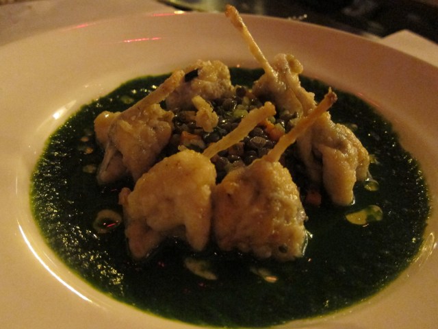 Cuisses de Grenouilles – sautéed frog’s legs, warm lentil salad, parsley coulis