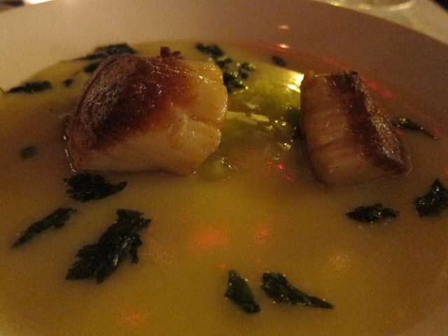 Soft, juicy scallops were perfectly complemented by the savory leek chowder