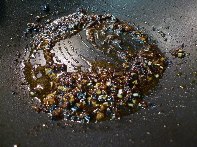 In a large wok over medium high heat, add 1 T vegetable oil, chili bean paste (black bean sauce + chili garlic sauce), sugar, sesame oil and soy sauce. Stir in the garlic and ginger until fragrant.