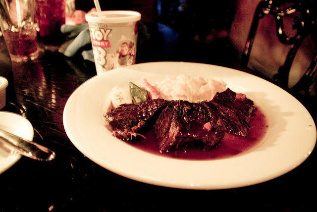 Buccaneer’s Beef Short Ribs – Slow-roasted, then finished in a Zinfandel demi-glaze. With Blue Bayou potatoes and seasonal vegetables.