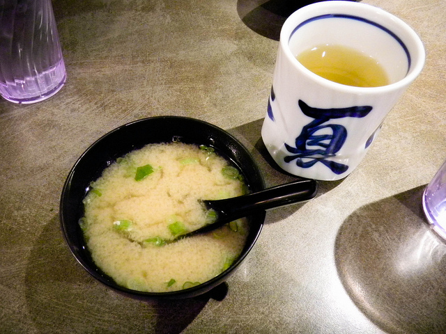 The menu is a bit overwhelming since there is so much to look at. It’s like a huge spreadsheet 6 pages long. Our dinner set came with rice, miso soup and salad with noodles in some kind of delicious sesame dressing.