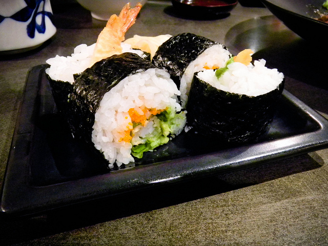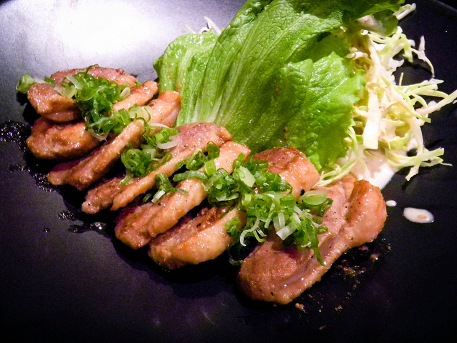 Izakaya is kind of like a Japanese pub. The term izakaya originates from sake shops that allowed customers to sit and drink. “i” = to sit, sakaya = sake shop. This place is very tiny– it shares a door with neighboring restaurant, House of Genji– after walking through the main door you immediately turn left to enter Izakaya. There’s a few tables to sit at and a bar (seen above). Despite the fact that where we sat was squeezed between a large pole and the entrance, the food and service each time Tim and I visited were excellent. Izakaya is usually open until late, which is perfect for late-night dinners.