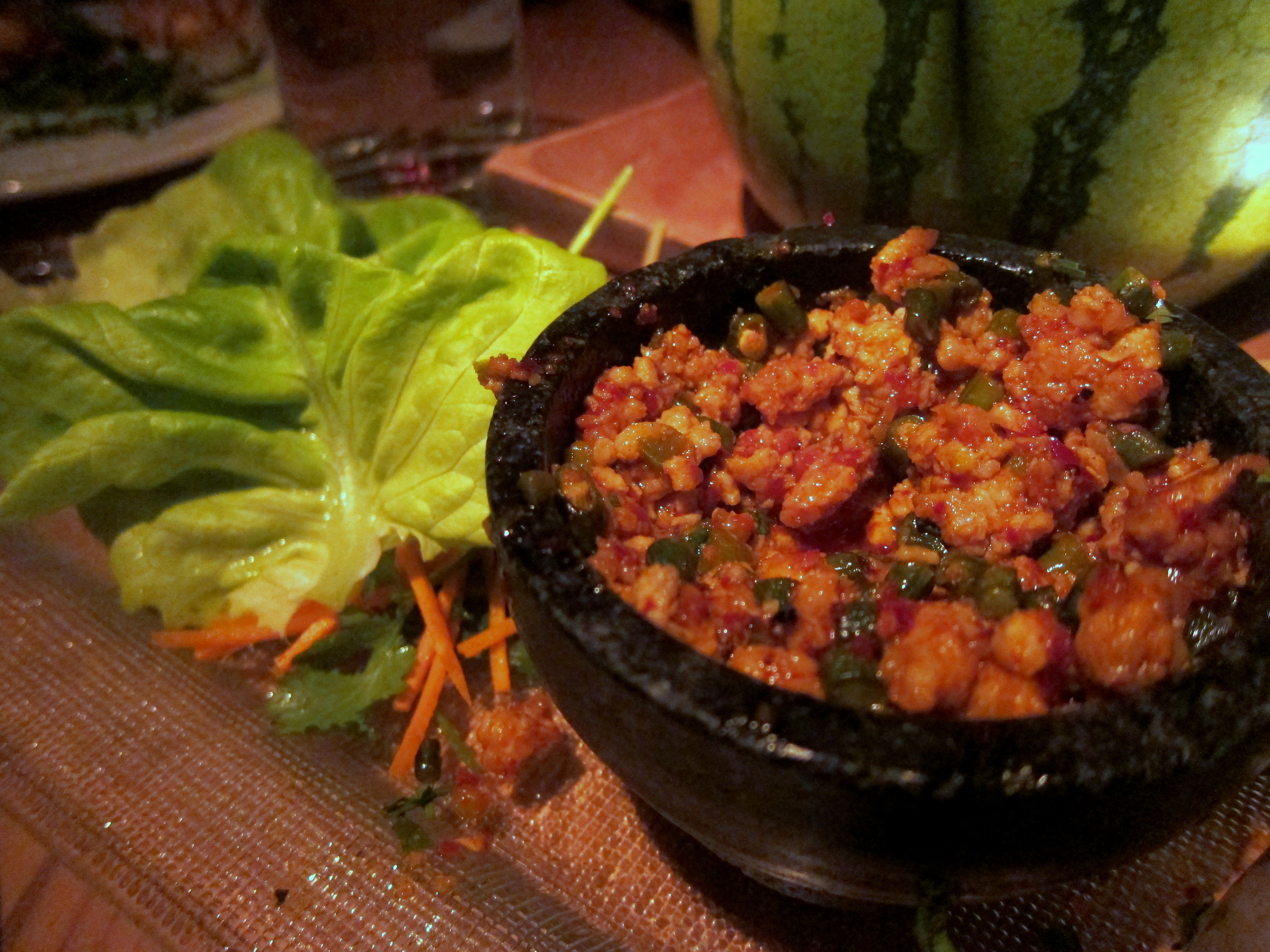 That was some spicy ground chicken! My aunt makes the BEST lettuce wraps ever so I am a bit spoiled but these were quite flavorful. They also serve Crispy Chicken Spring Rolls and Shrimp with Mai Fun in lettuce wrap form.