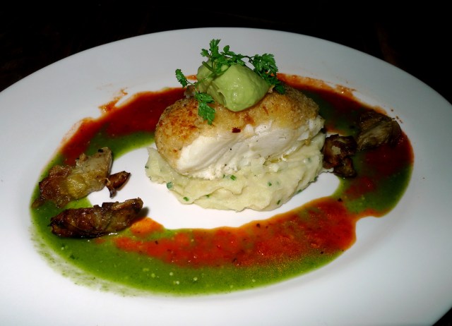 This fish will literally melt in your mouth… the lemon crust provides a nice little zing to the smooth, velvety fish. The potato puree and crispy artichokes complement the dish quite nicely, along with fresh zesty Latin flavors to round it off.