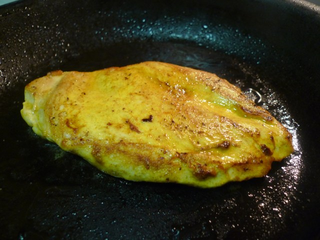 Mix together the paprika and curry in a small bowl. Season the chicken breasts on both sides with the mixture. Cover and refrigerate for 2 hours.