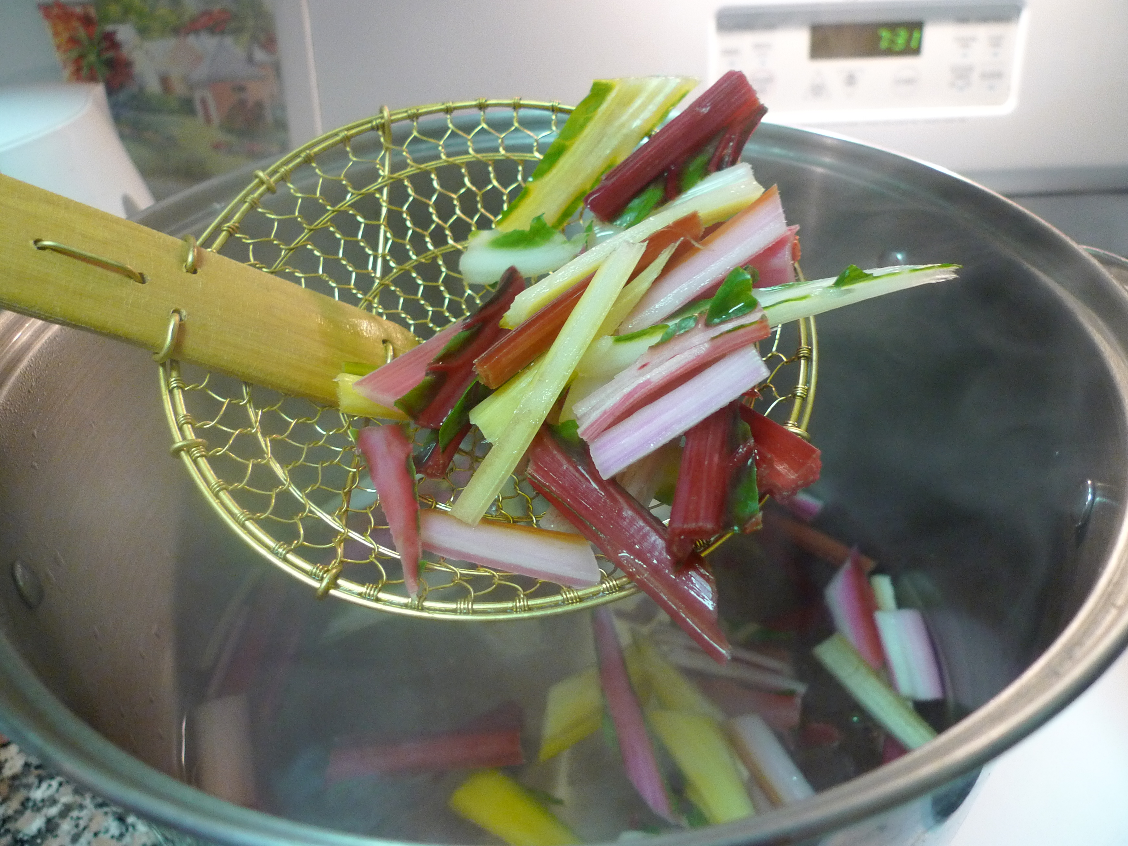 • 4 lbs rainbow chard (if the chard you find has very large stems, buy 5 lbs to get enough greens)