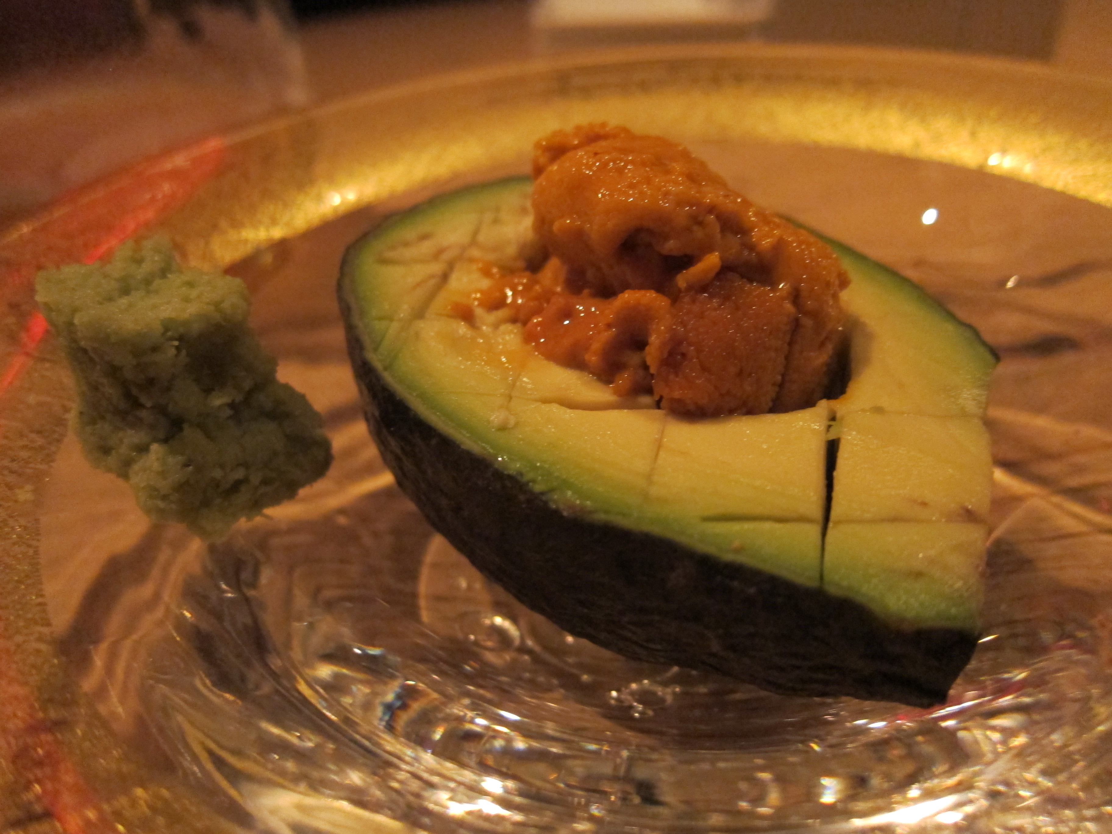 Avocado and Sea Urchin on top with Wasabi