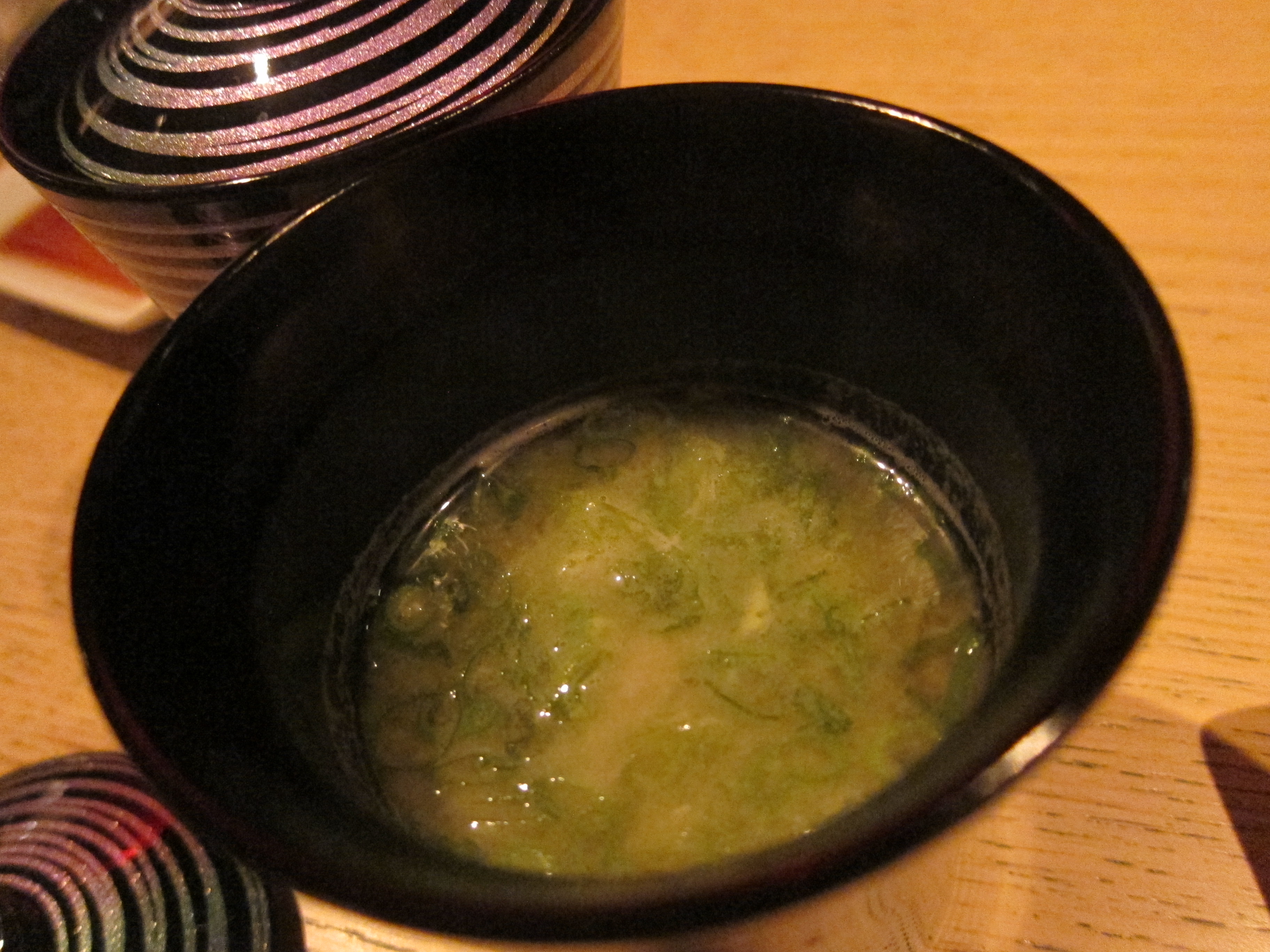 I love miso soup, and rarely have it at the end of the meal, but I was getting full so the light savory soup was a nice way to bookend the meal.