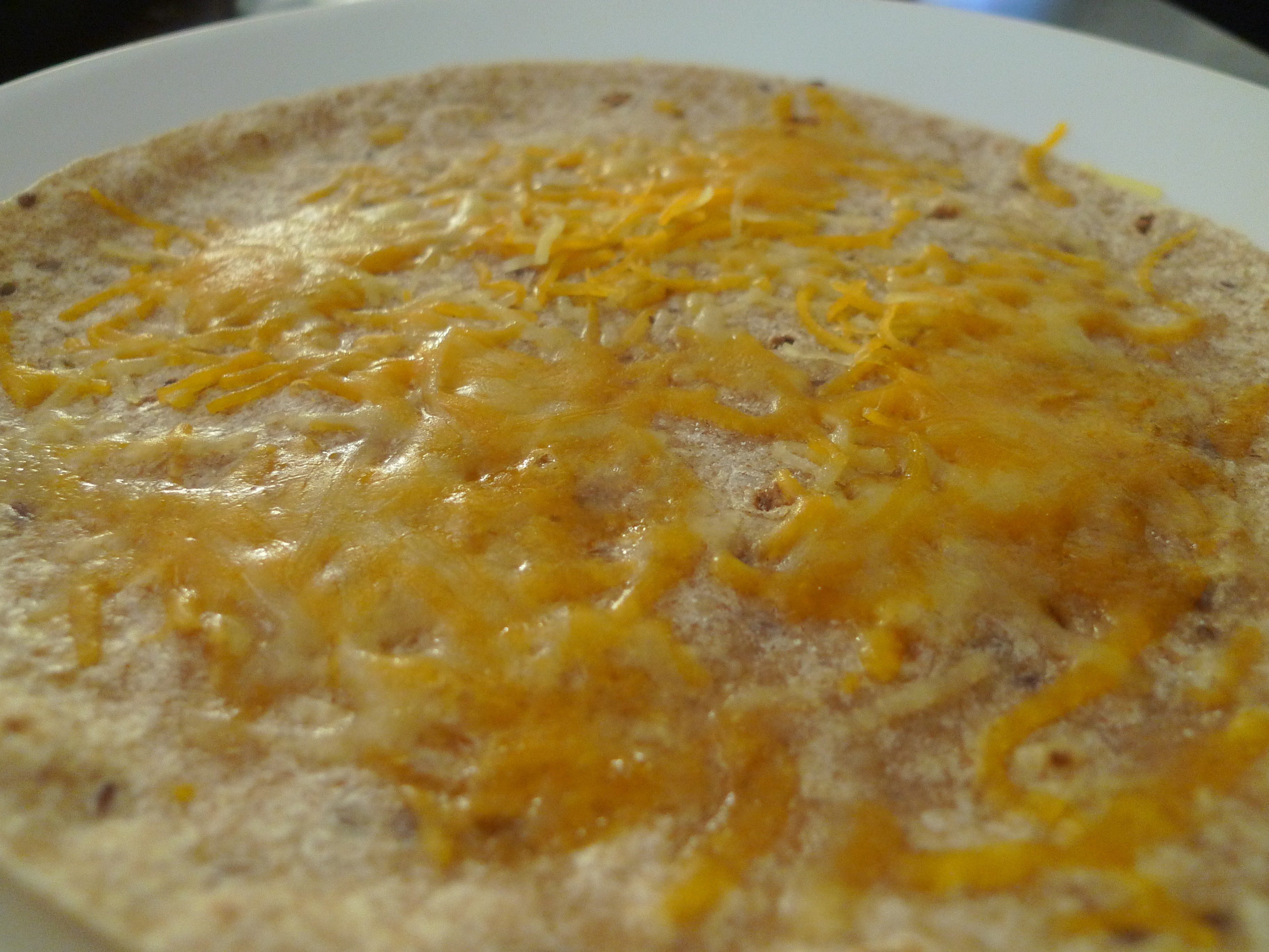 Heat some Mexican cheese on a tortilla until melted (30 sec in the microwave).
