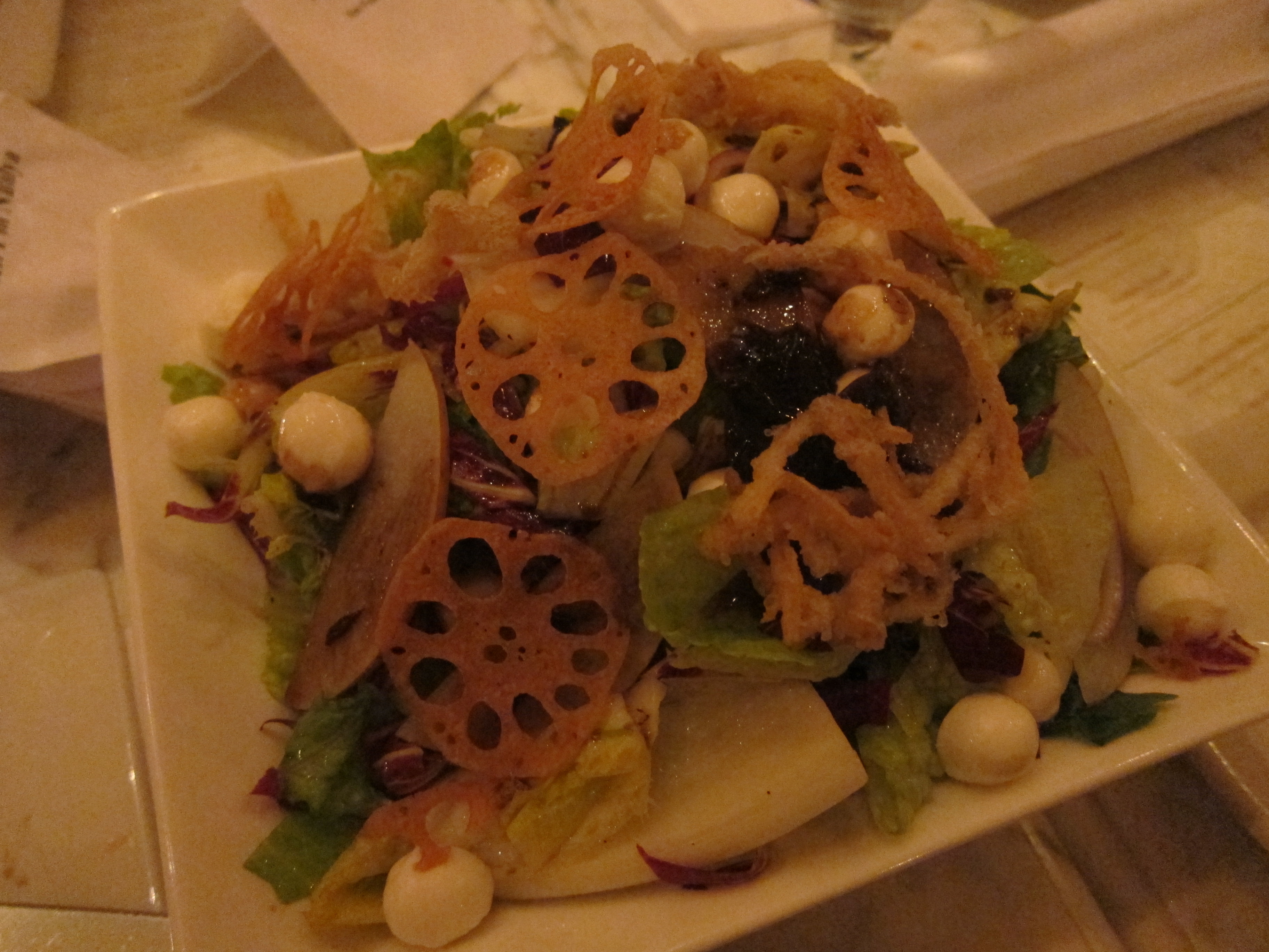 Oh man I loved this salad. I think I got three extra helpings. Everything was fresh and the crispy lotus roots were an awesome touch to the taste buds as well as aesthetically.