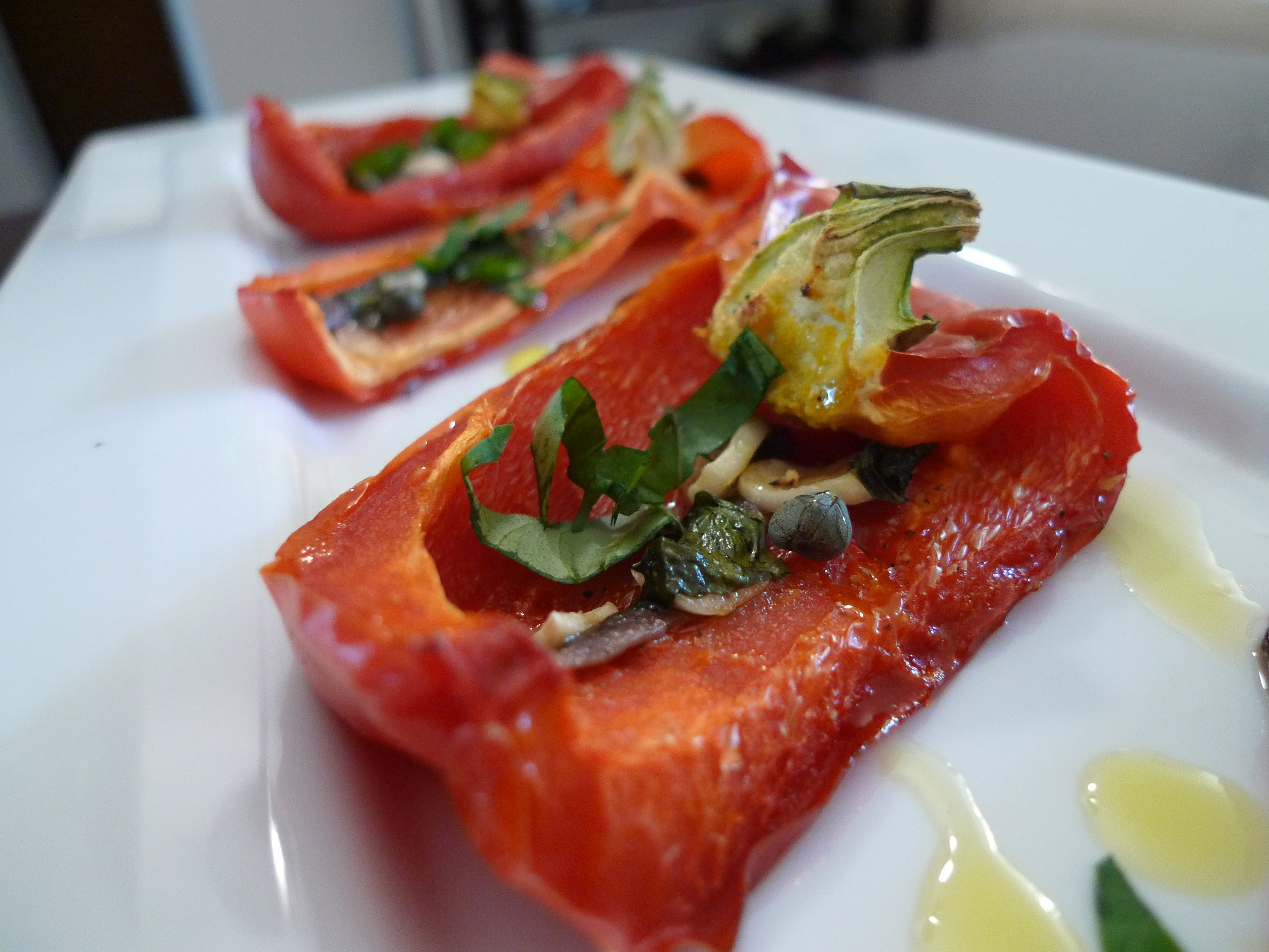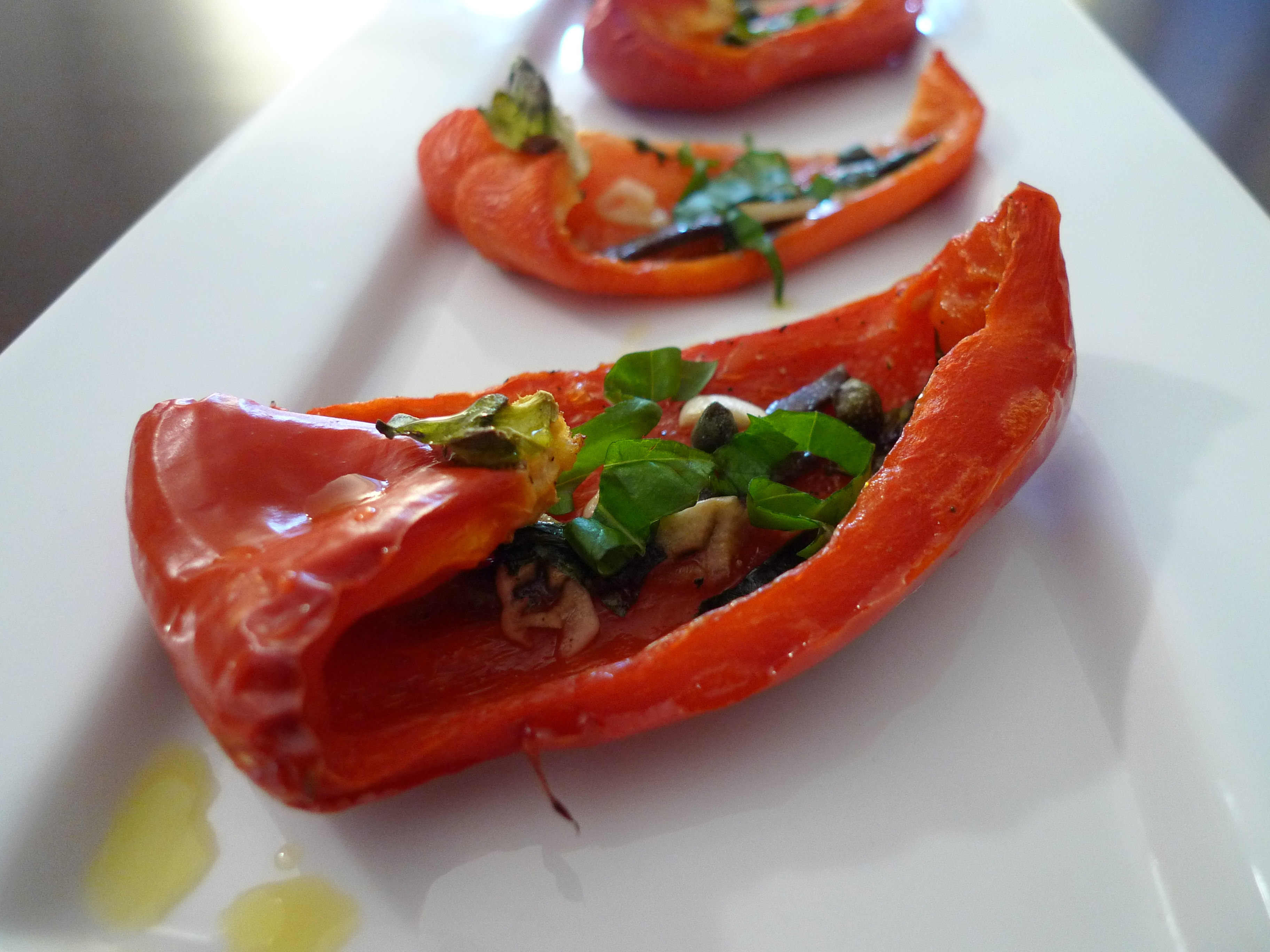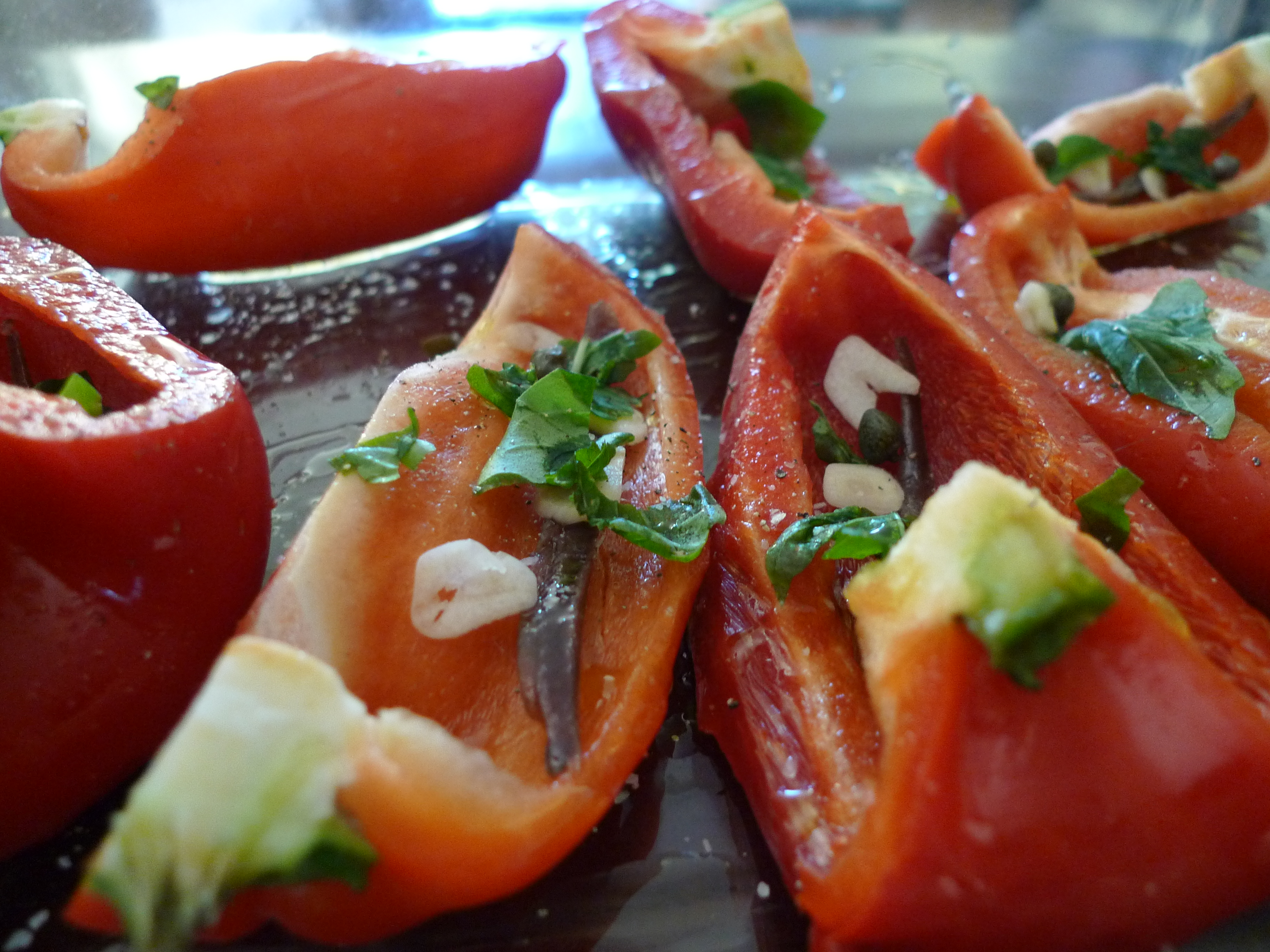Baked Peppers (Capsicums) with Anchovies (from the Essential Mediterranean Cookbook)