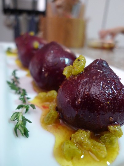 Natalya and I typically dress our salads with just balsamic vinegar and extra virgin olive oil, but we started experimenting with making our own dressings such as Lemon Vinaigrette. Here is a great vinaigrette recipe from Kei Kurobe infused with curry and and mixed with golden raisins. I originally made this to served atop my Roasted Beets but have also enjoyed using it to dress salads.