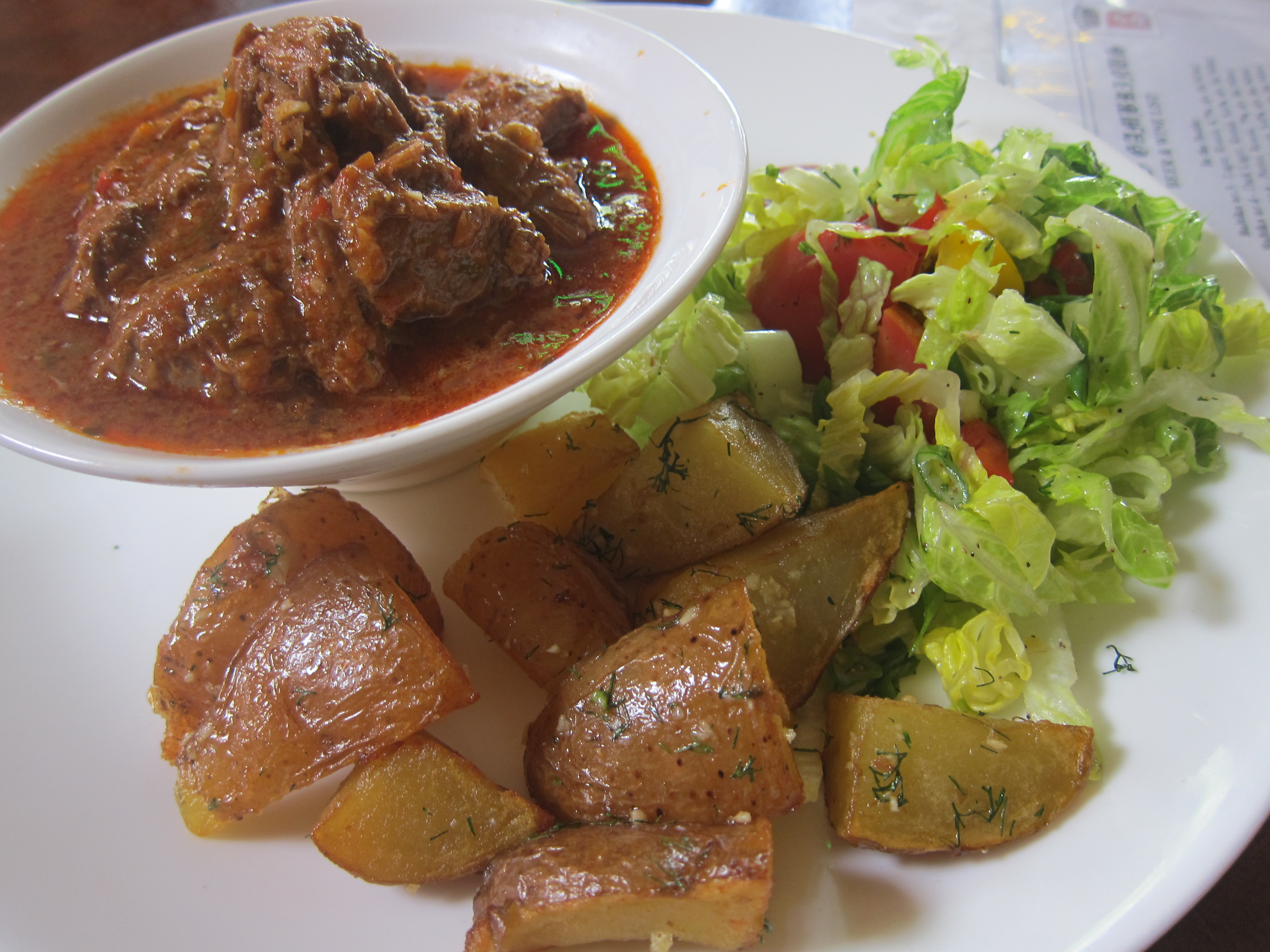 Hungarian Goulash – Beef stew with bell peppers, paprika, celery and tomatoes, served with homemade potatoes