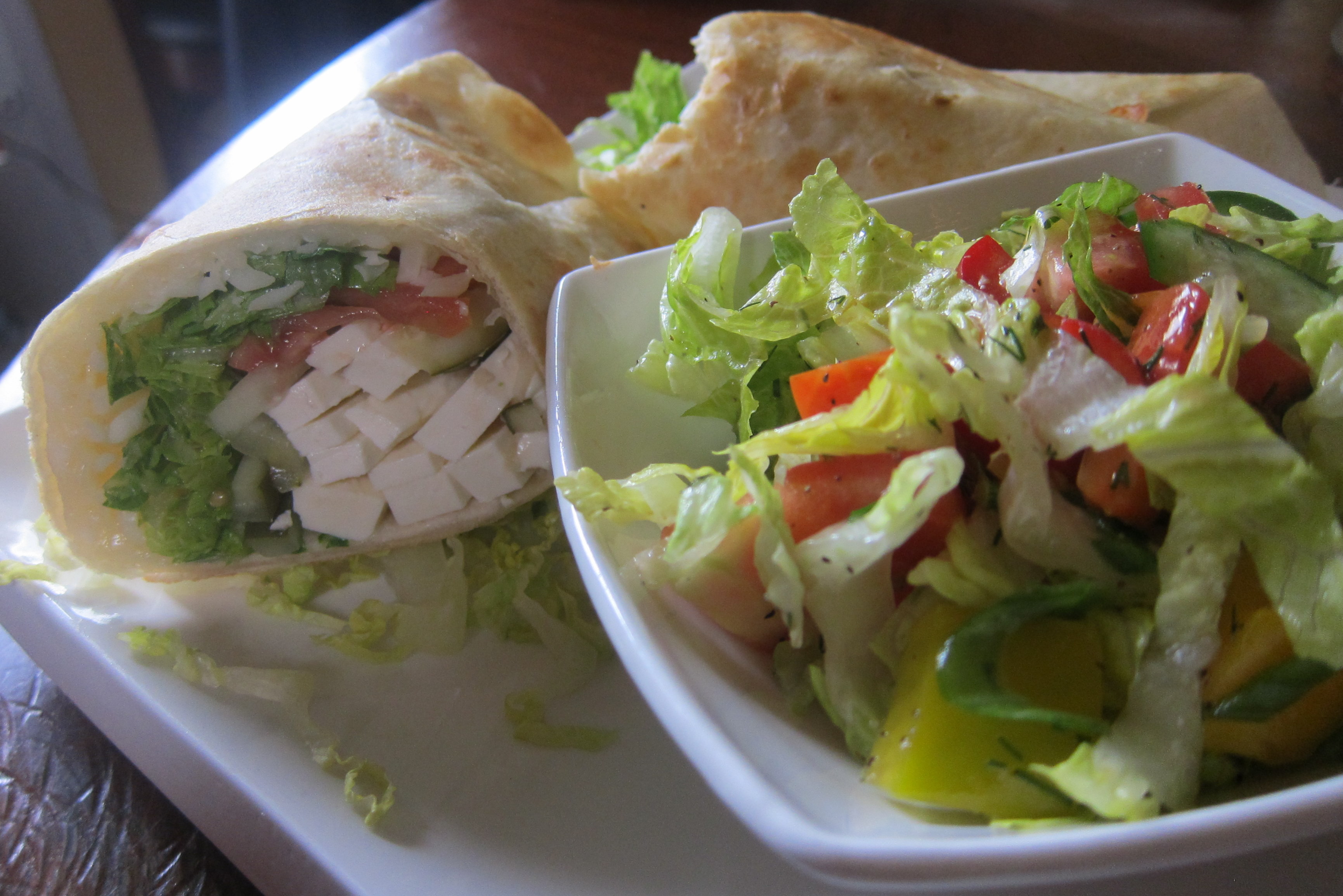 Vegetarian Pita – wrapped with lettuce, pickle, tomato, mayonnaise and cheese
