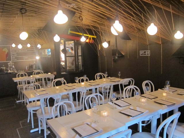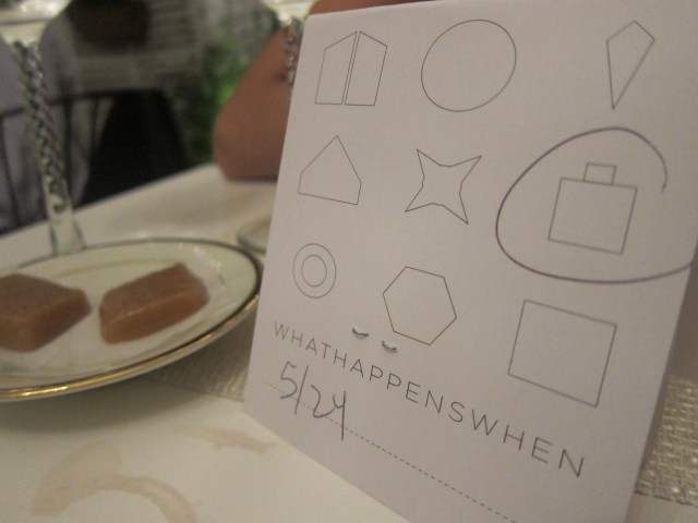So when I found out about What Happens When, a new restaurant creation of Dovetail owner and chef John Fraser whose premise is a thematic monthly metamorphosis, my curiosity was piqued. Not only is the decor and menu changed each month, but the sounds played at the restaurant go along with the theme, or “Movement.” The whole project is temporary restaurant installation that will to cease to exist after a 9 month span (Feb – Oct 2011). The restaurant was funded via the platform kickstarter, which gives the restaurant a micro-financing/start up/cool yuppie allure.