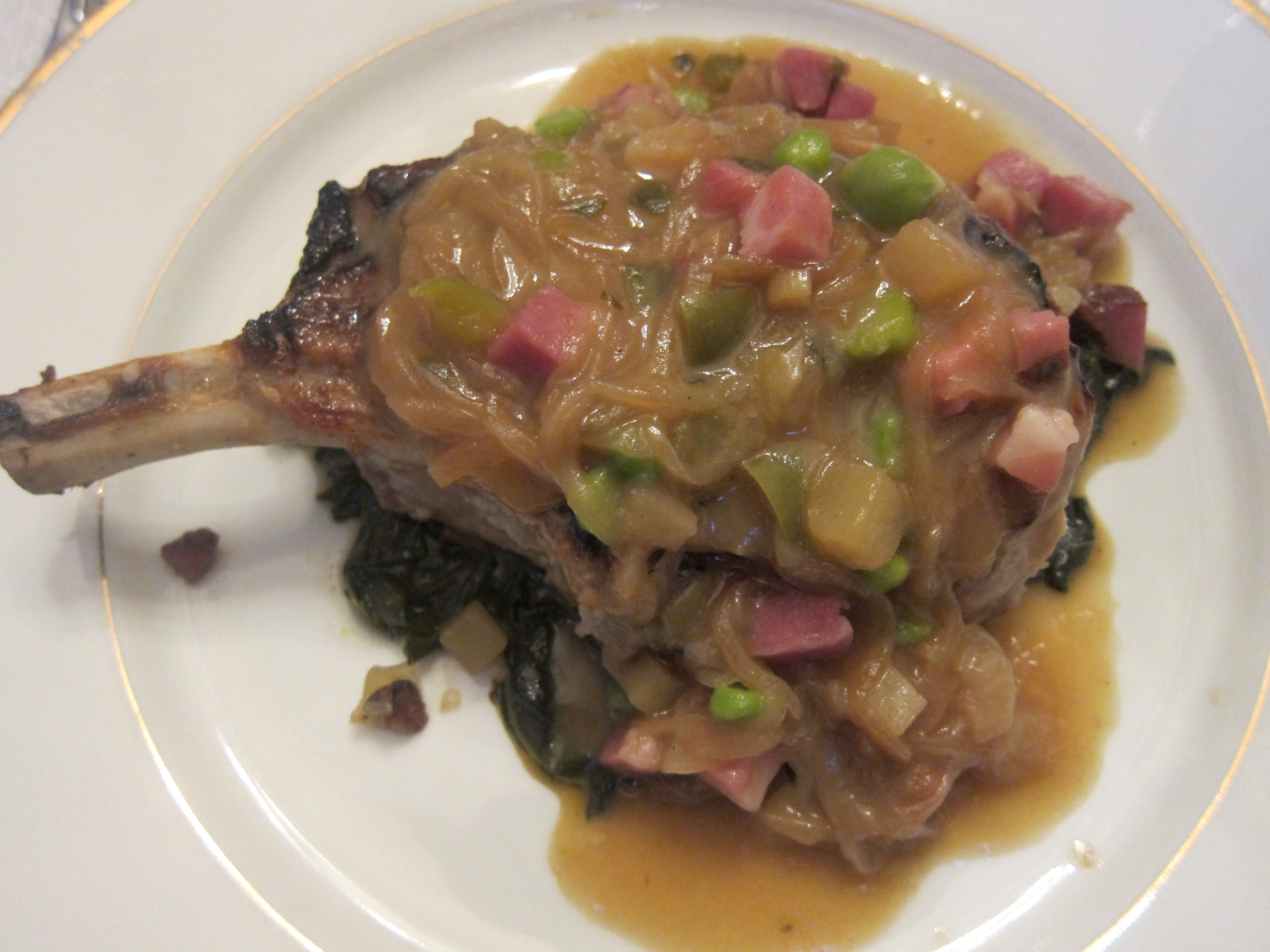 Pork Chop Etouffée – Spring Onions, Collard Greens, Tasso