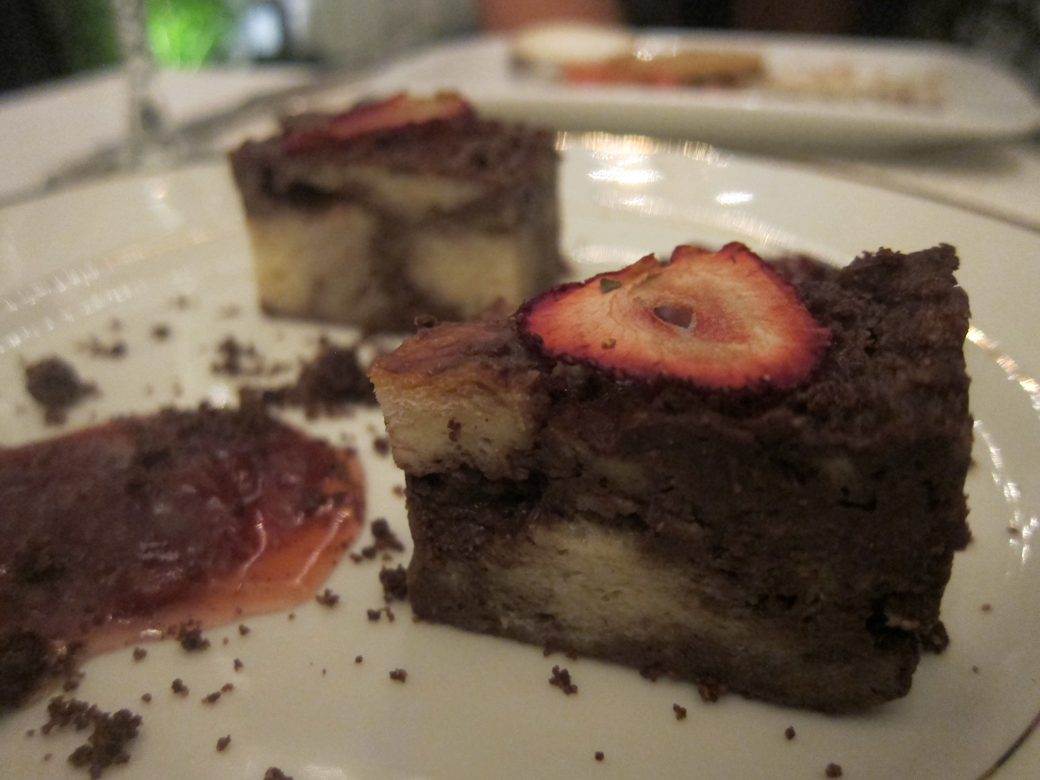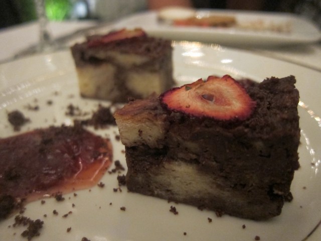 Bitter Chocolate Bread Pudding – Strawberries, Root Beer