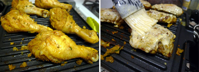 Add about 1/2 cup coconut milk to the bowl with the remaining marinate. Stir to mix and use this coconut milk mixture to baste pieces after each turning. Grill until cooked through.