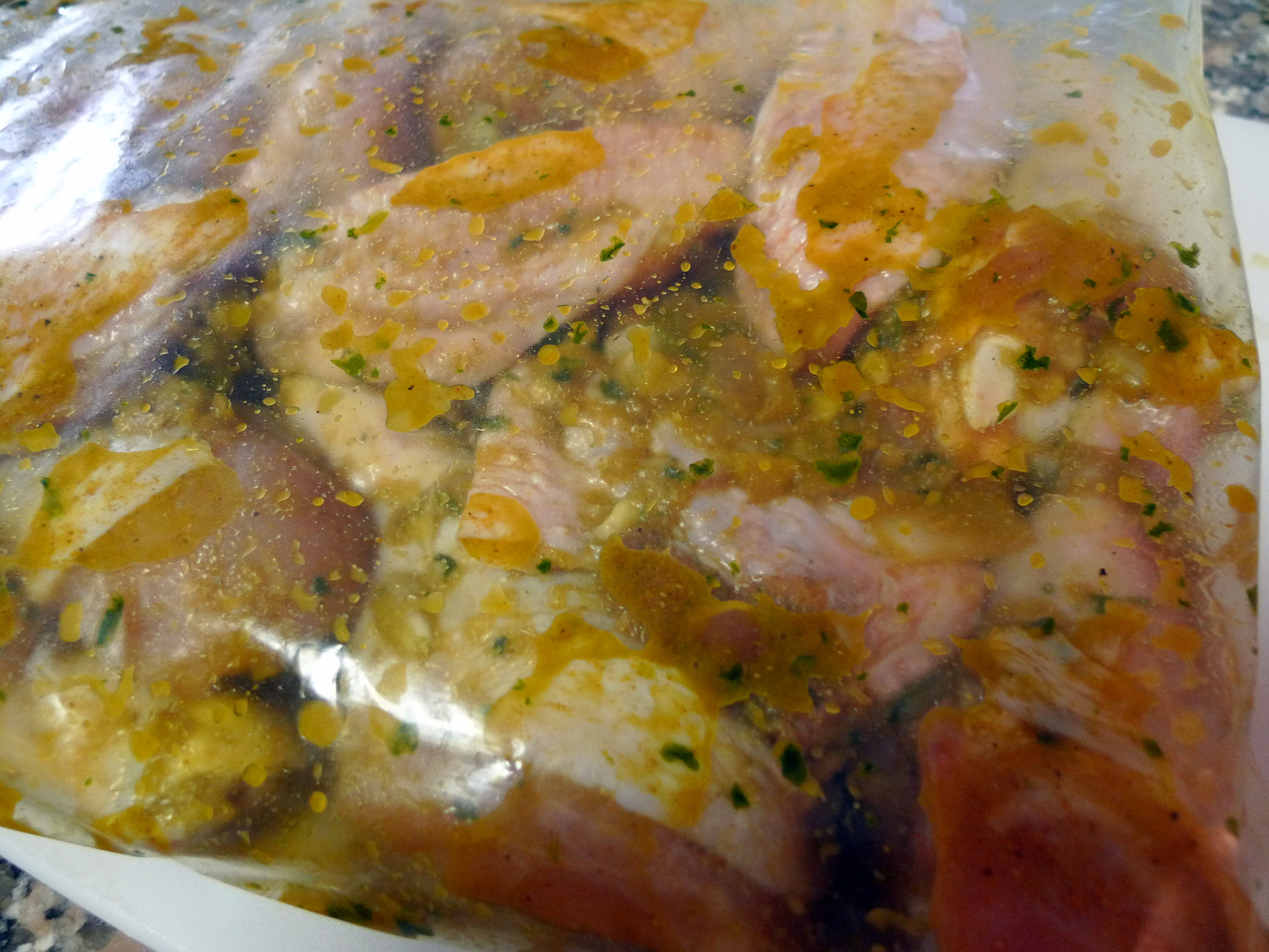 - 1 large roasting chicken, cut into smaller sections or half a dozen leg-thigh pieces (I used wings and drumsticks)