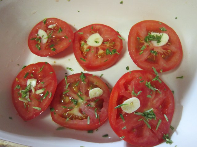 - 4 large or 6 smaller ripe tomatoes (note that not all of them might fit in your casserole)