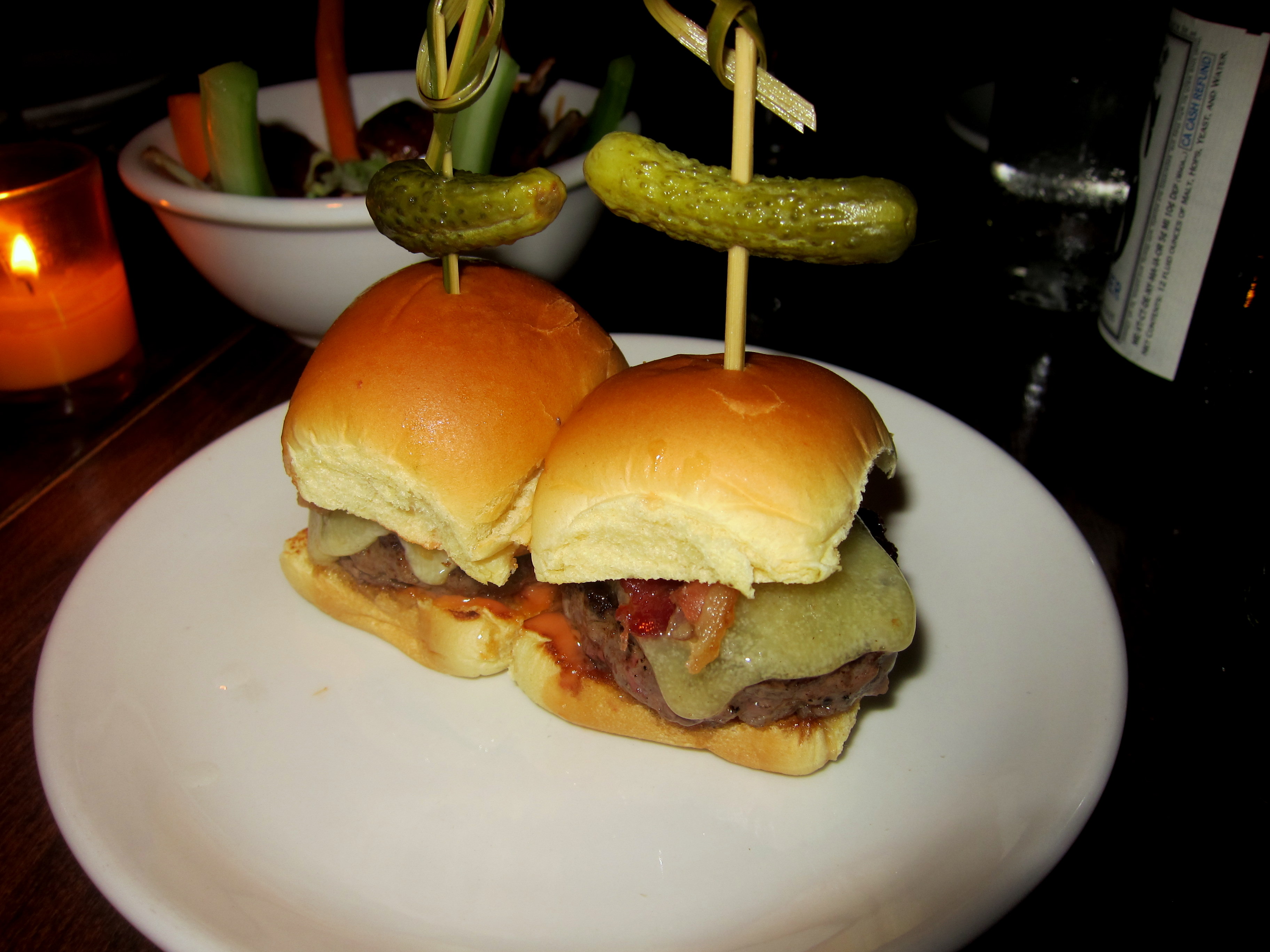 Bison Sliders with smoked cheddar, bacon and special sauce