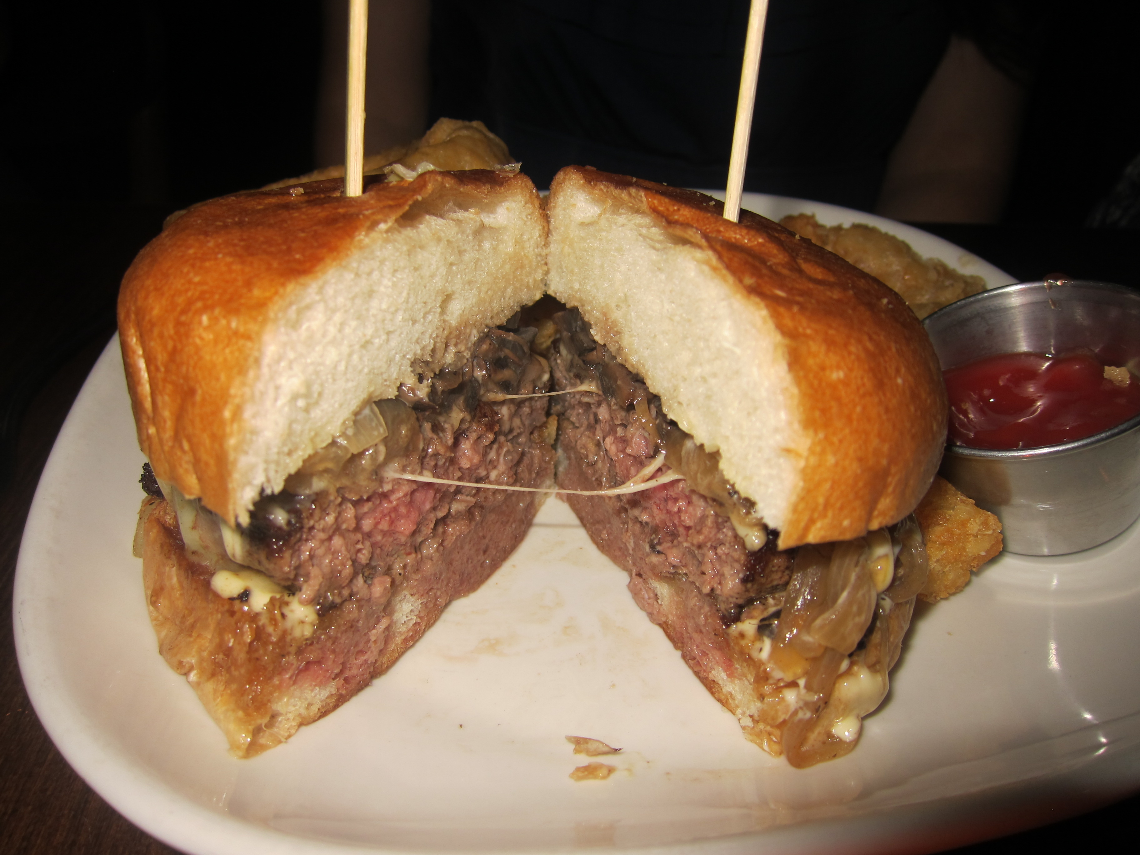 Can’t really go wrong with mushroom and gruyère, but it’s very rich as one would expect.  I’ve tried making my own Mushroom Duxelle Sliders version but that had the mushrooms and onions mixed in with the patty.