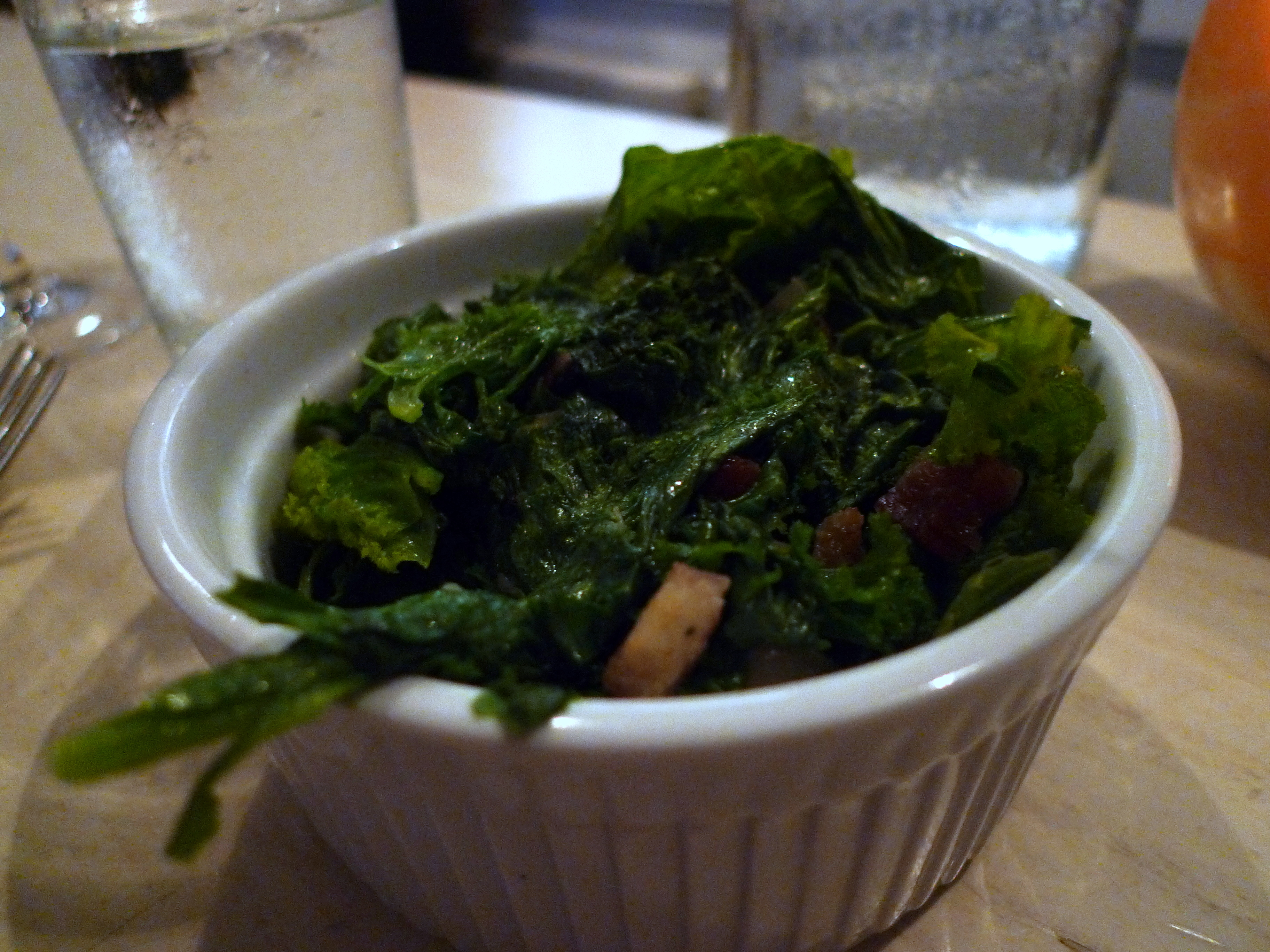 I’m pretty sure that was what this dish was… loved the slightly bitter greens that was tempered with garlic and fried bacon bits.