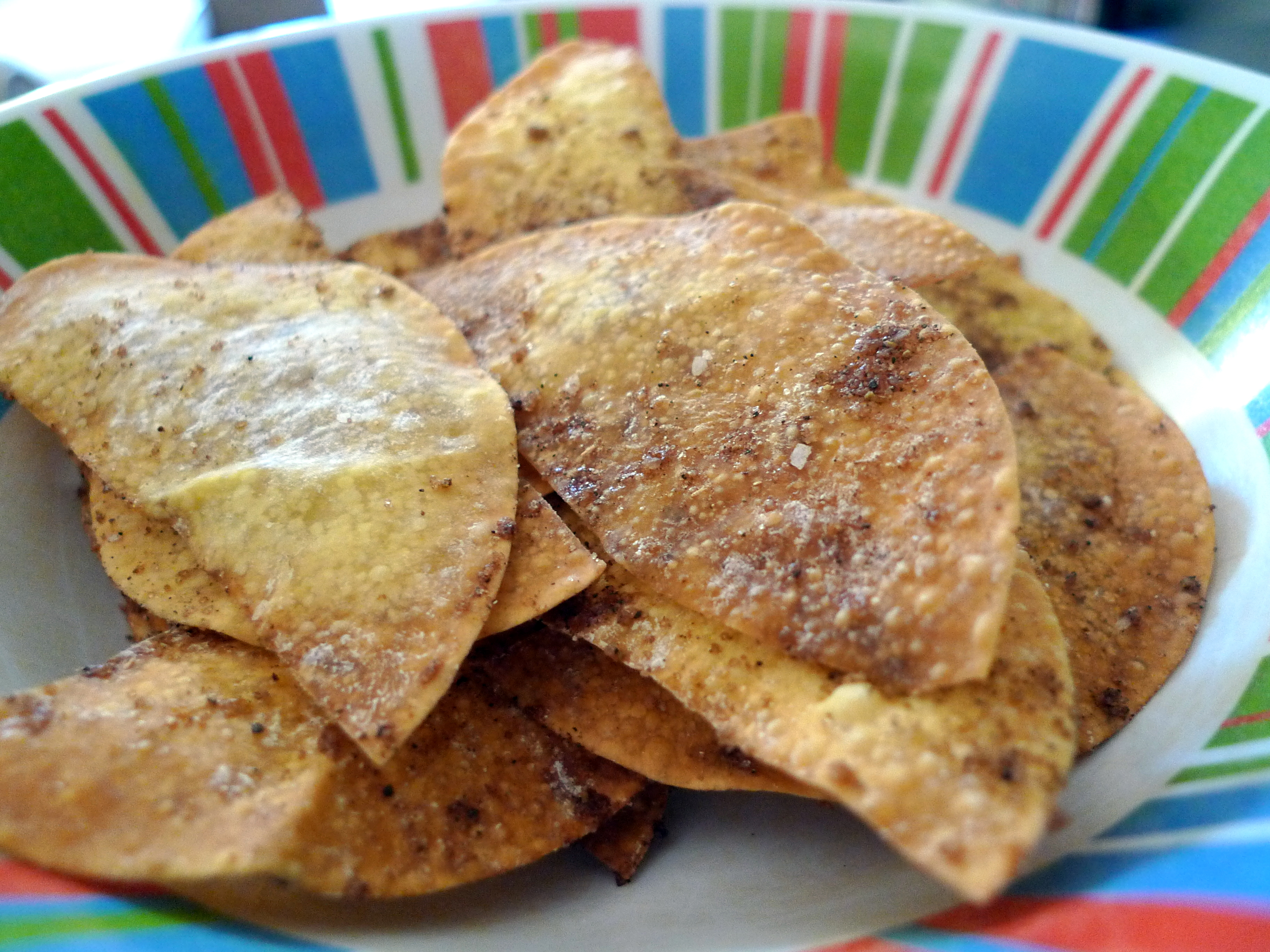 After baking my own Chili Lime Tortilla Chips (um from already made tortillas), I decided to try out another do-it-yourself-chip-flavor at home. I had plenty of wonton wrappers leftover from my Wonton Baskets and decided to use some of the wontons to make chips. These little morsels were sweet and spicy and quite addicting!