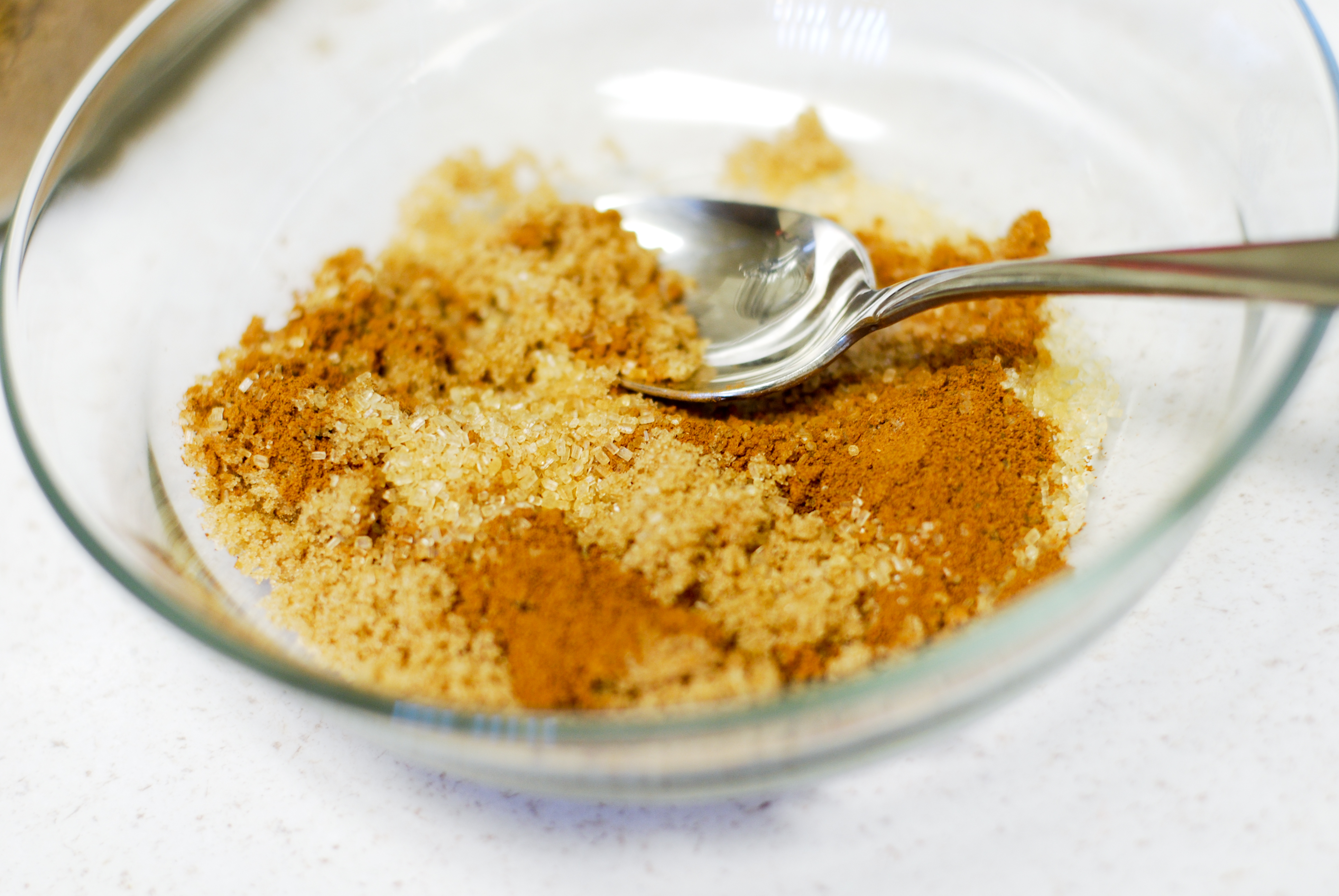7. In a small bowl combine remaining 1/4 cup sugar and 2 tsp cinnamon, set that aside as well.